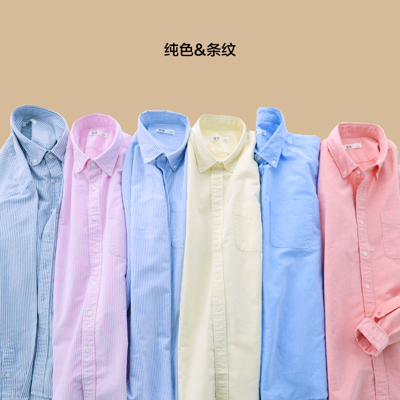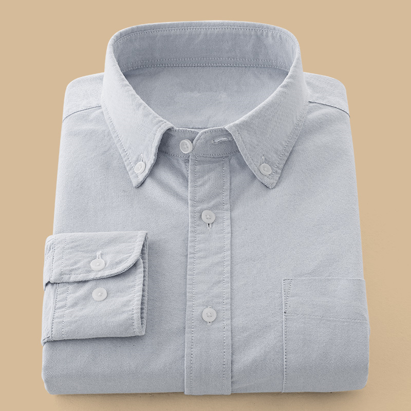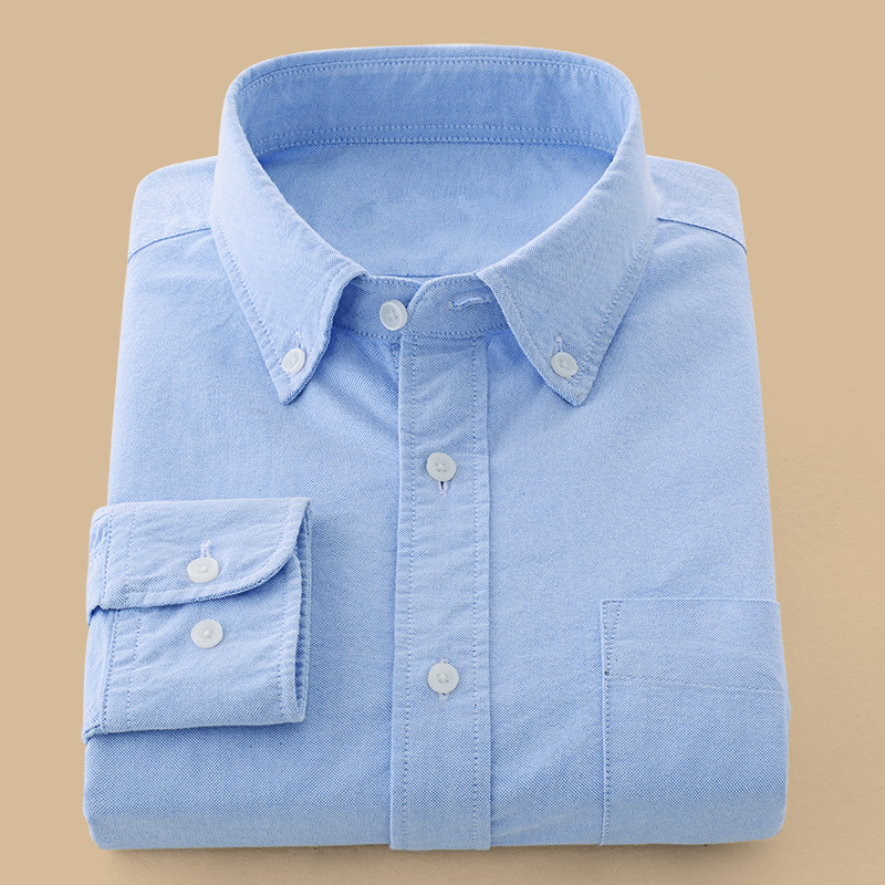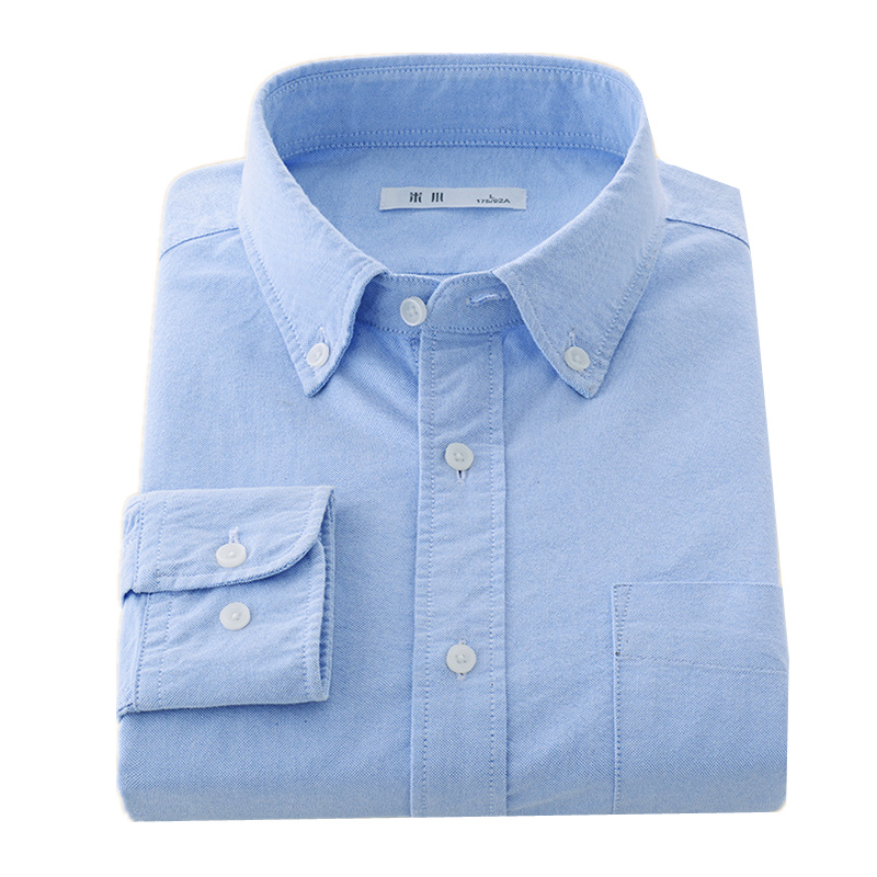 秋款男士休闲长袖衬衫修身型牛津纺单色内穿外穿淡蓝色寸上衣
