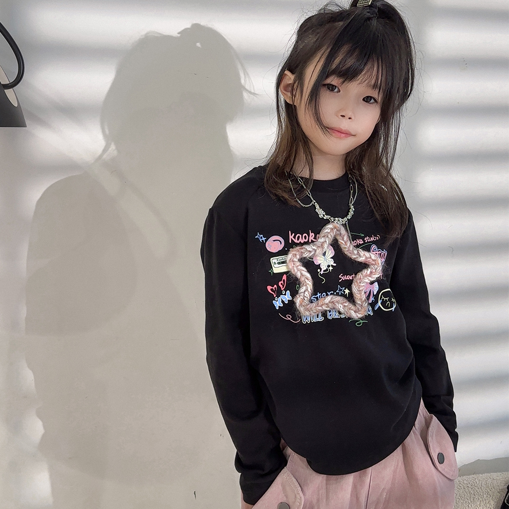 茜哩茜咔中大童长袖韩版T恤圆领