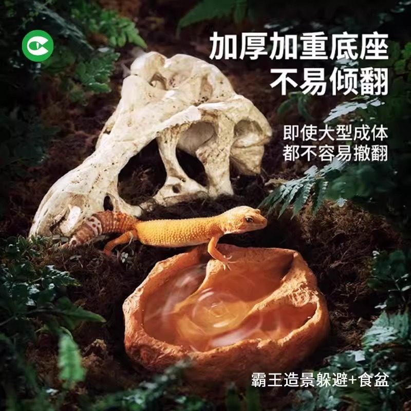 其鳞恐龙头骨树脂可沉水守宫蜥蜴蛇躲避屋洞晒背爬宠缸造景摆件