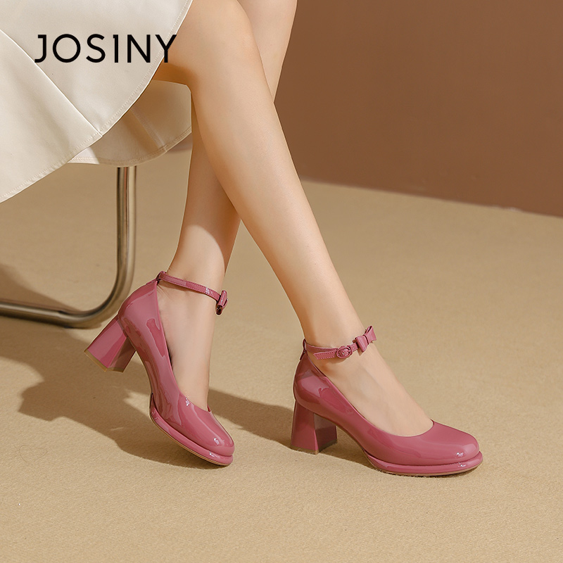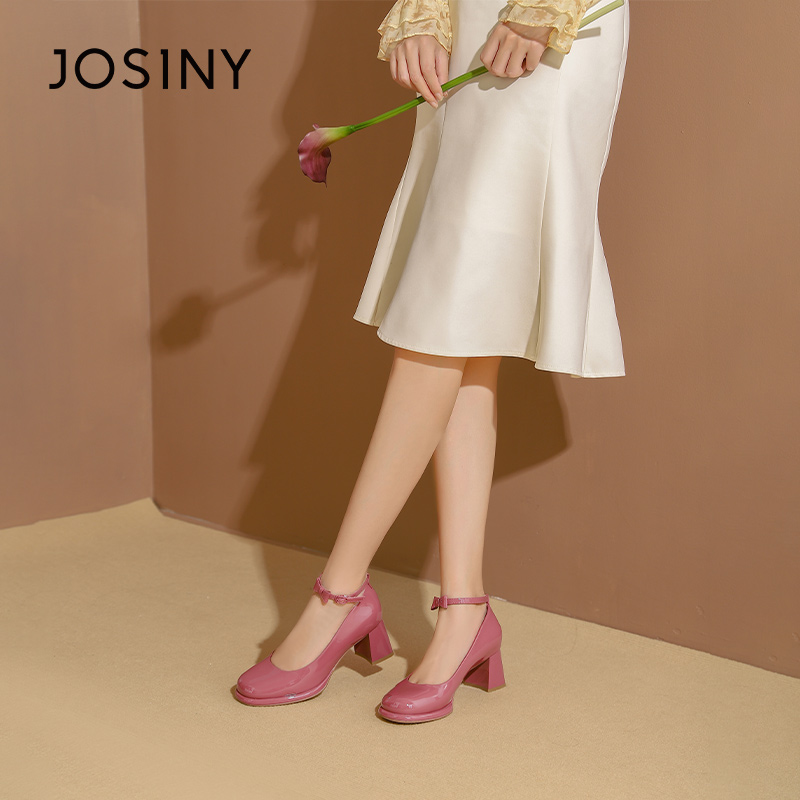 卓诗尼春秋季新款女士单鞋子圆头粗高跟一字带玛丽珍女鞋百搭可爱