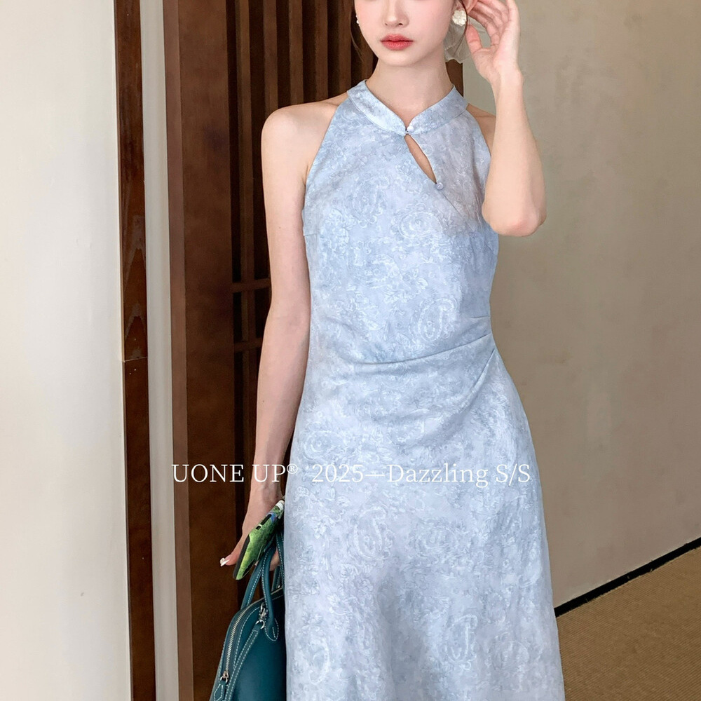 UONE十三行新中式提花连衣裙长裙