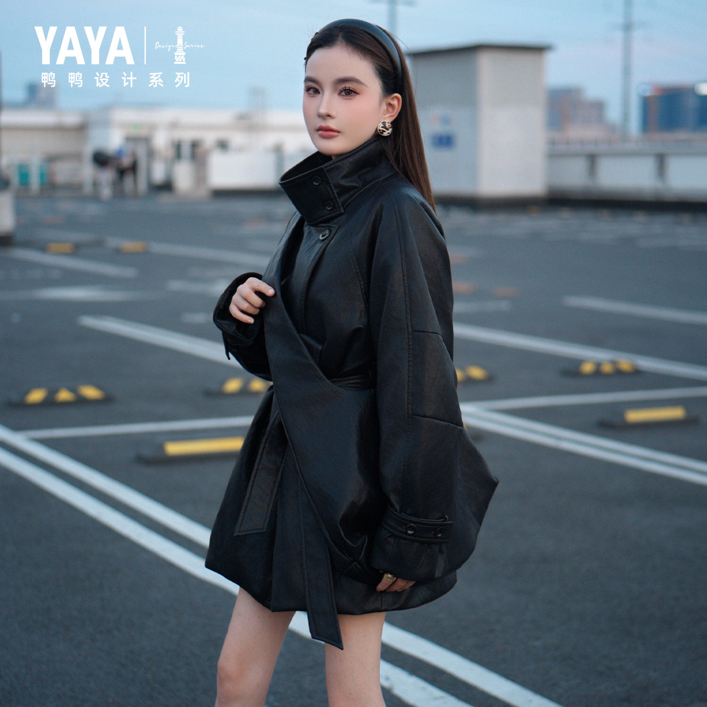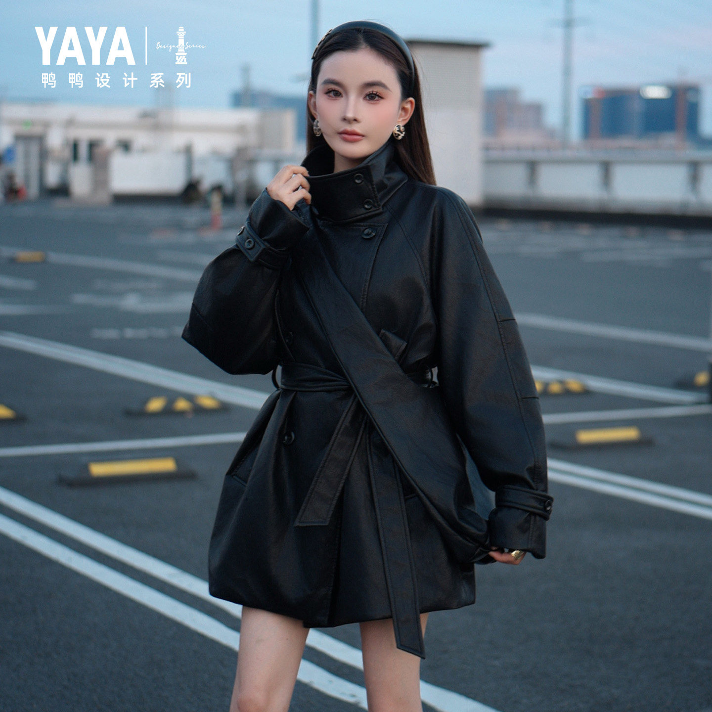 鸭鸭羽绒服2025冬装新款女士皮衣韩版修身显瘦时尚收腰风衣中长款