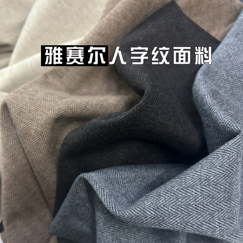 秋冬新款人字纹羊毛雅赛尔呢面料外套裤子服装布料加厚保暖