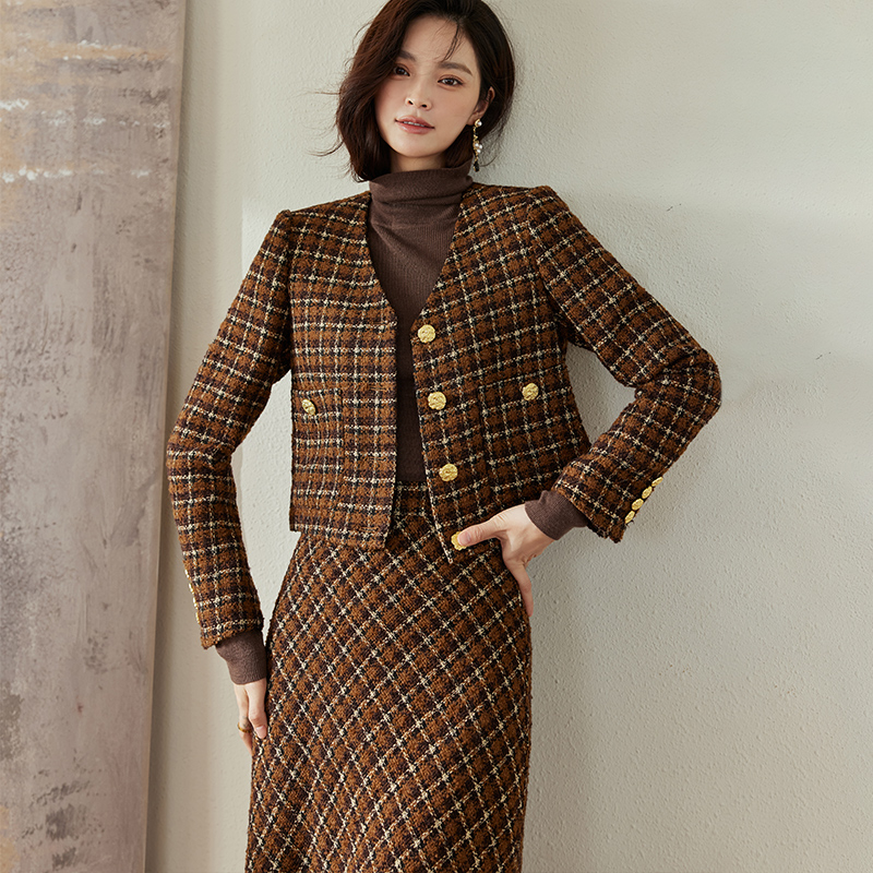 罗衣气质格子粗花呢套装