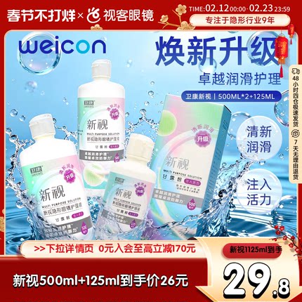 3瓶卫康新视隐形眼镜护理液瓶近视500*2+125ml官网视客旗舰店正品