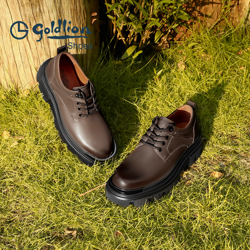 金利来男鞋户外工装鞋春秋季新款轻便时尚厚底棕色大头增高皮鞋