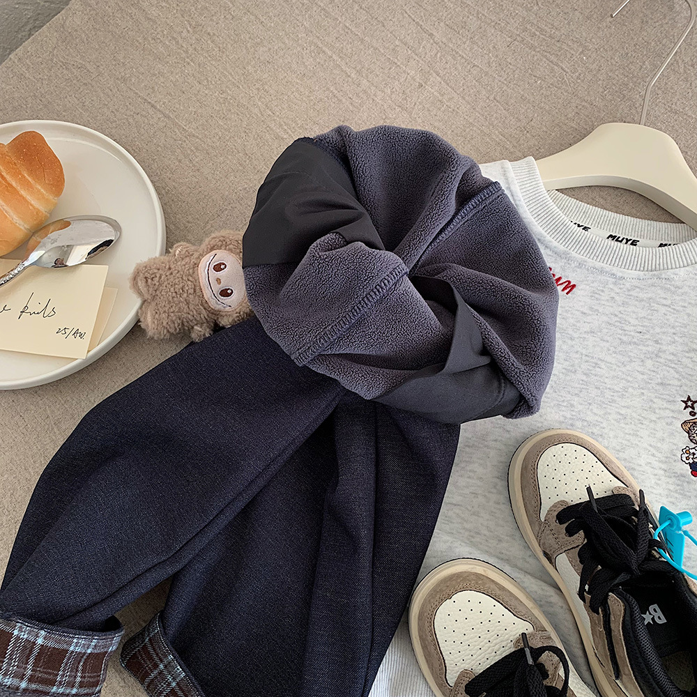 女童裤子冬季加绒卫裤童装男女童儿童加绒牛仔裤冬季童装