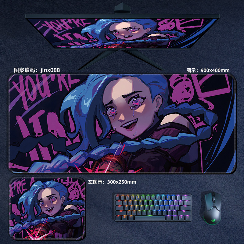 英雄联盟Jinx超大号鼠标垫暴走萝莉金克丝竞技游戏LOL键盘小锁边