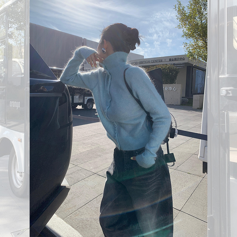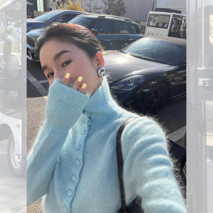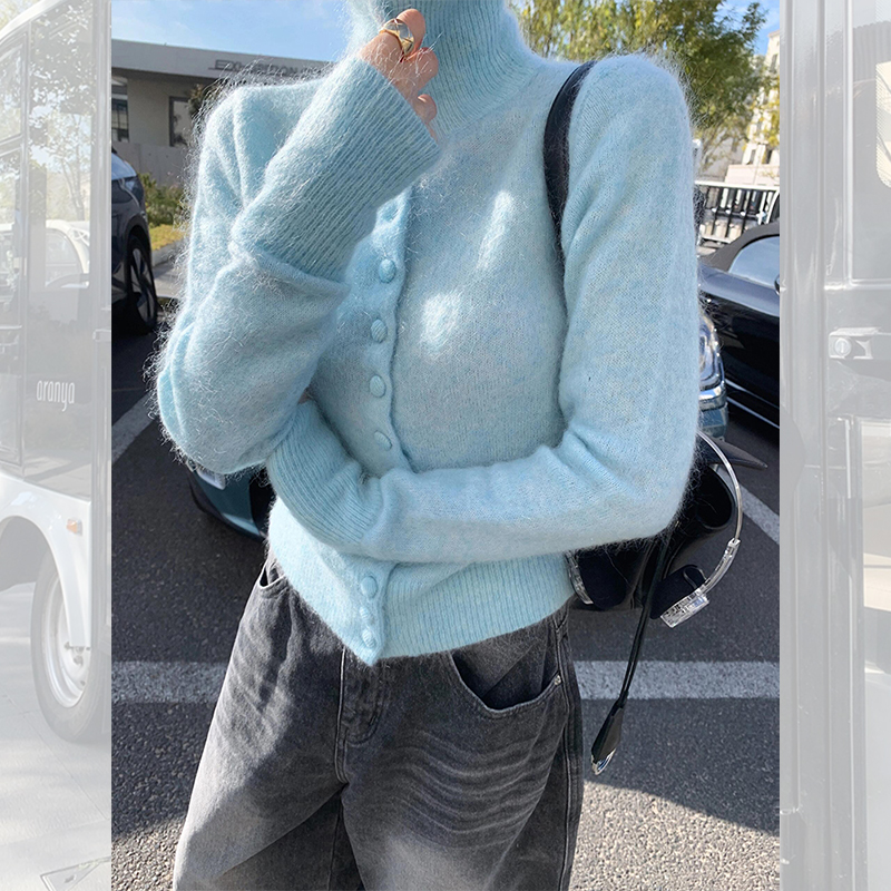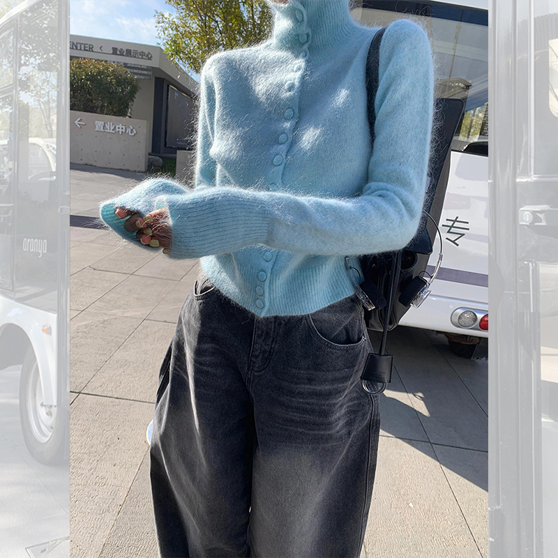 马海毛高领毛衣软糯针织开衫上衣