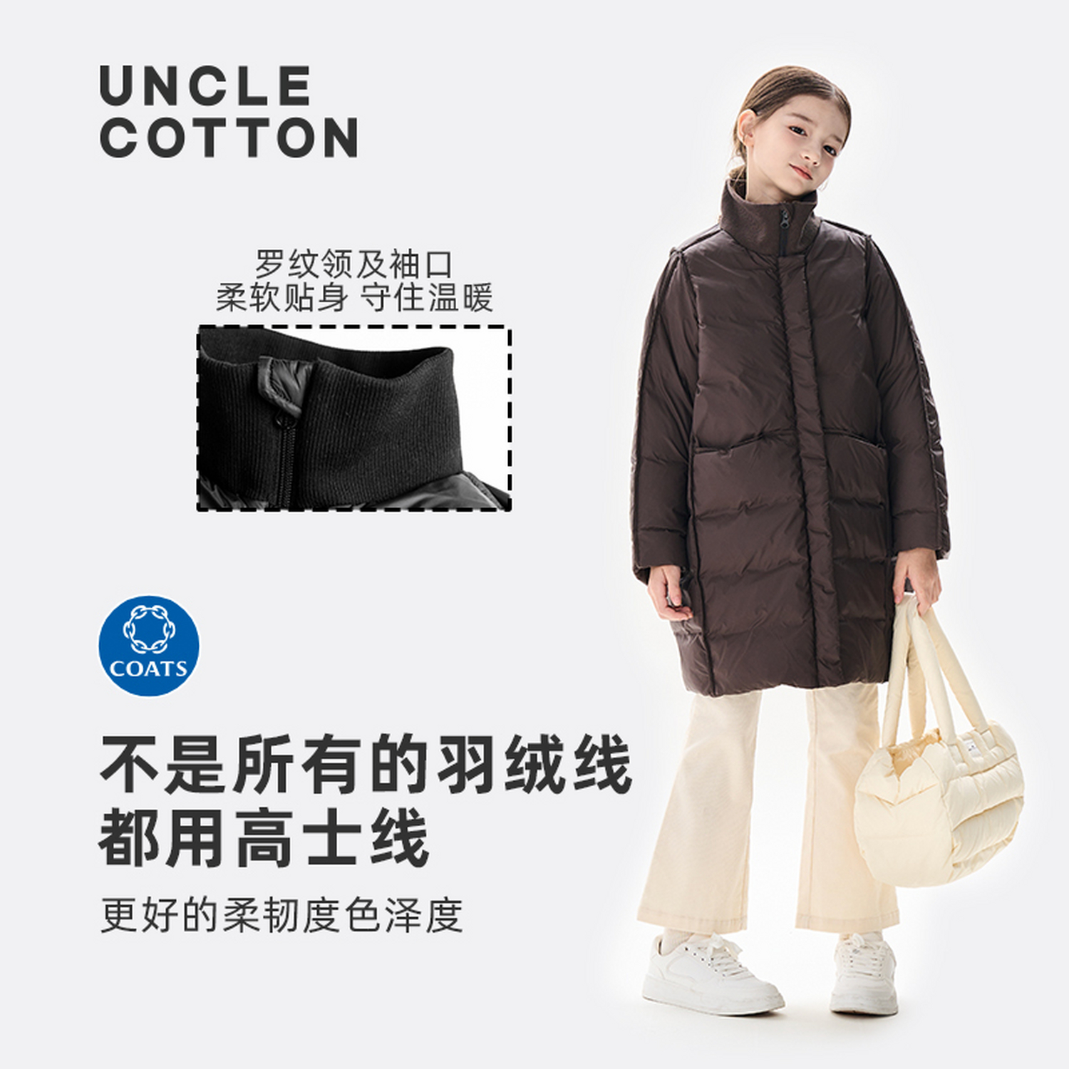 【10.20茧型羽绒服】棉叔叔女童中长款冬季厚款针织罗纹立领羽绒