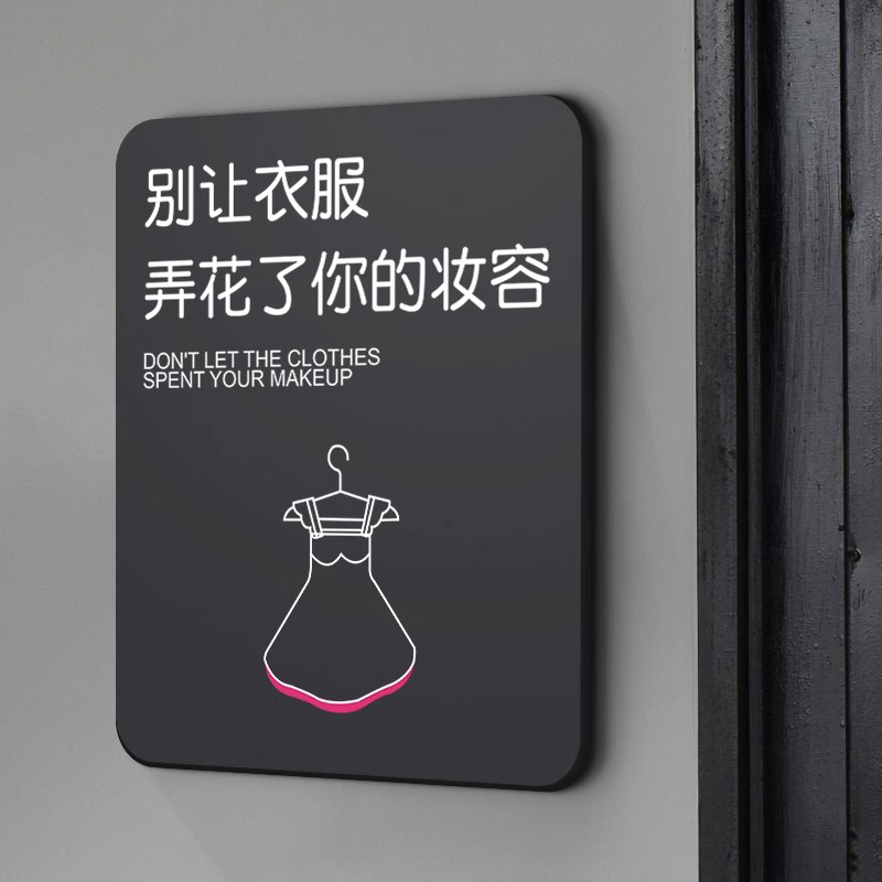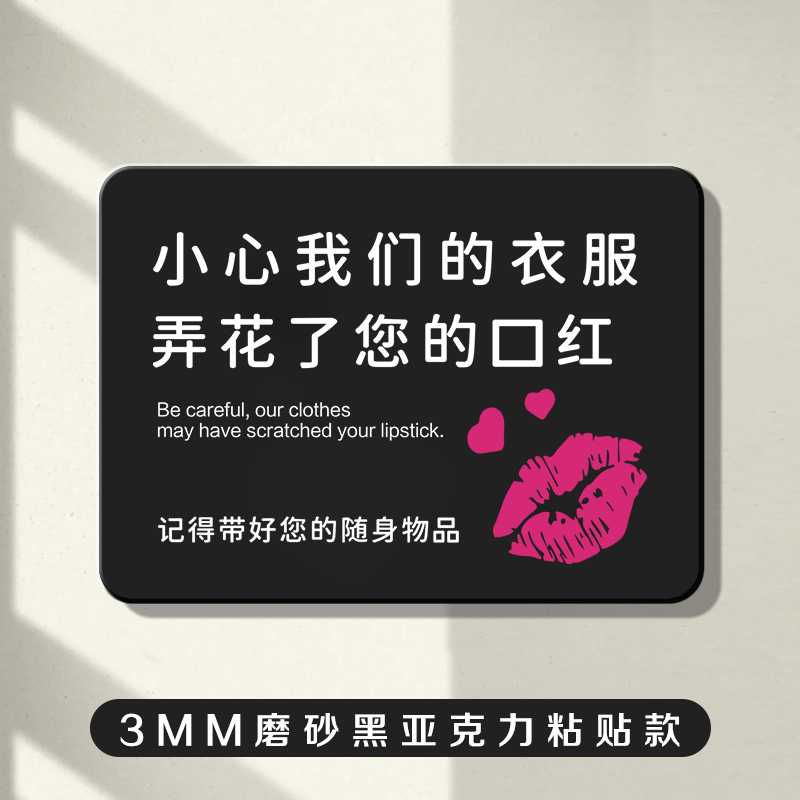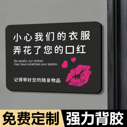 小心我们的衣服弄花了您的口红温馨提示牌贴纸个性创意高档商场服装店更衣试衣间亚克力门牌标识墙贴挂牌定制