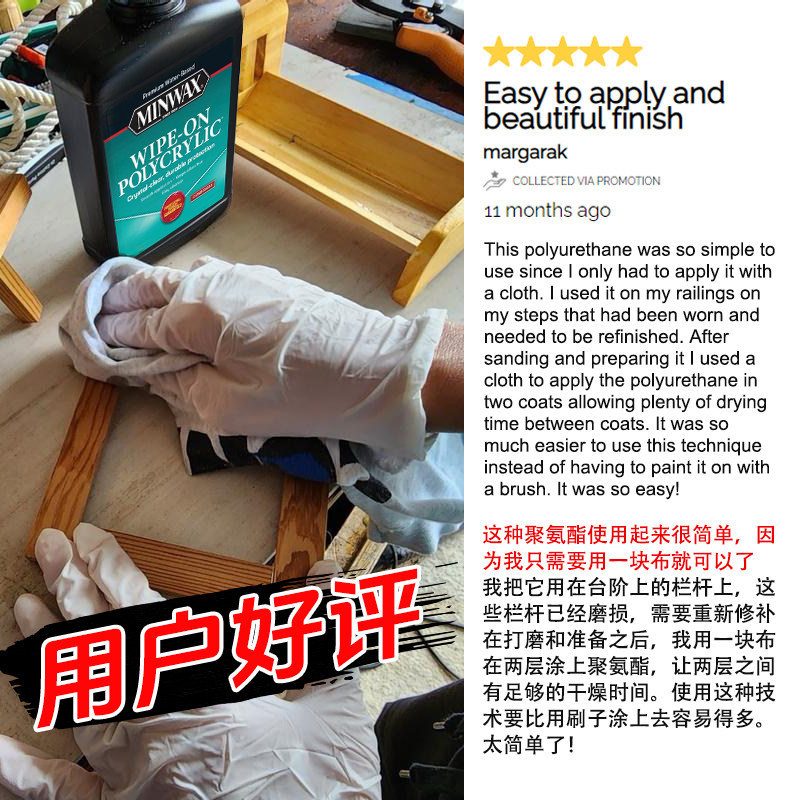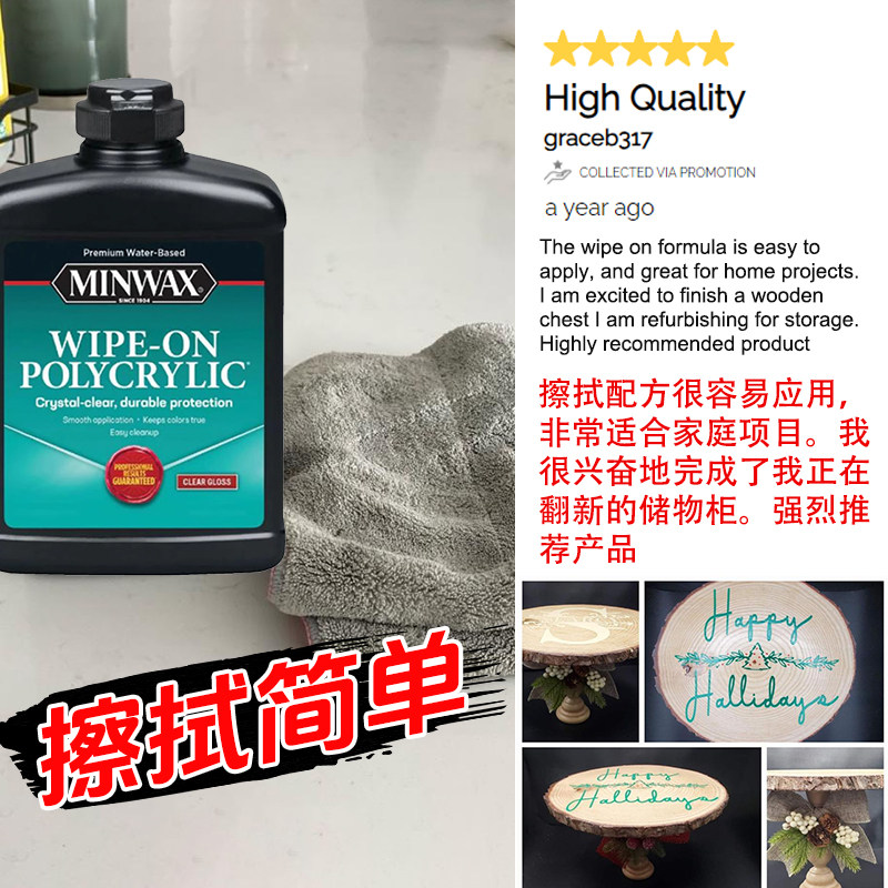 宣伟Minwax进口水性木器漆手擦油漆家具乐器翻新透明清漆替木蜡油