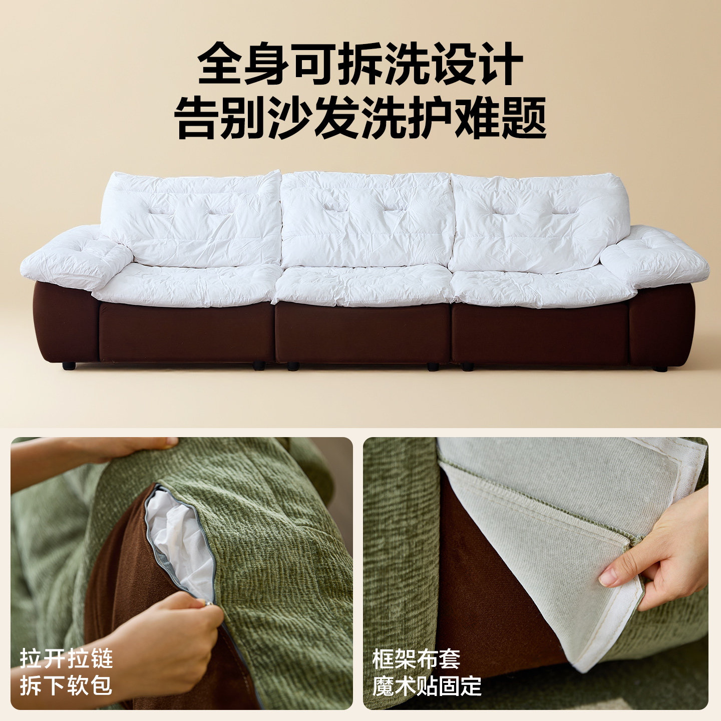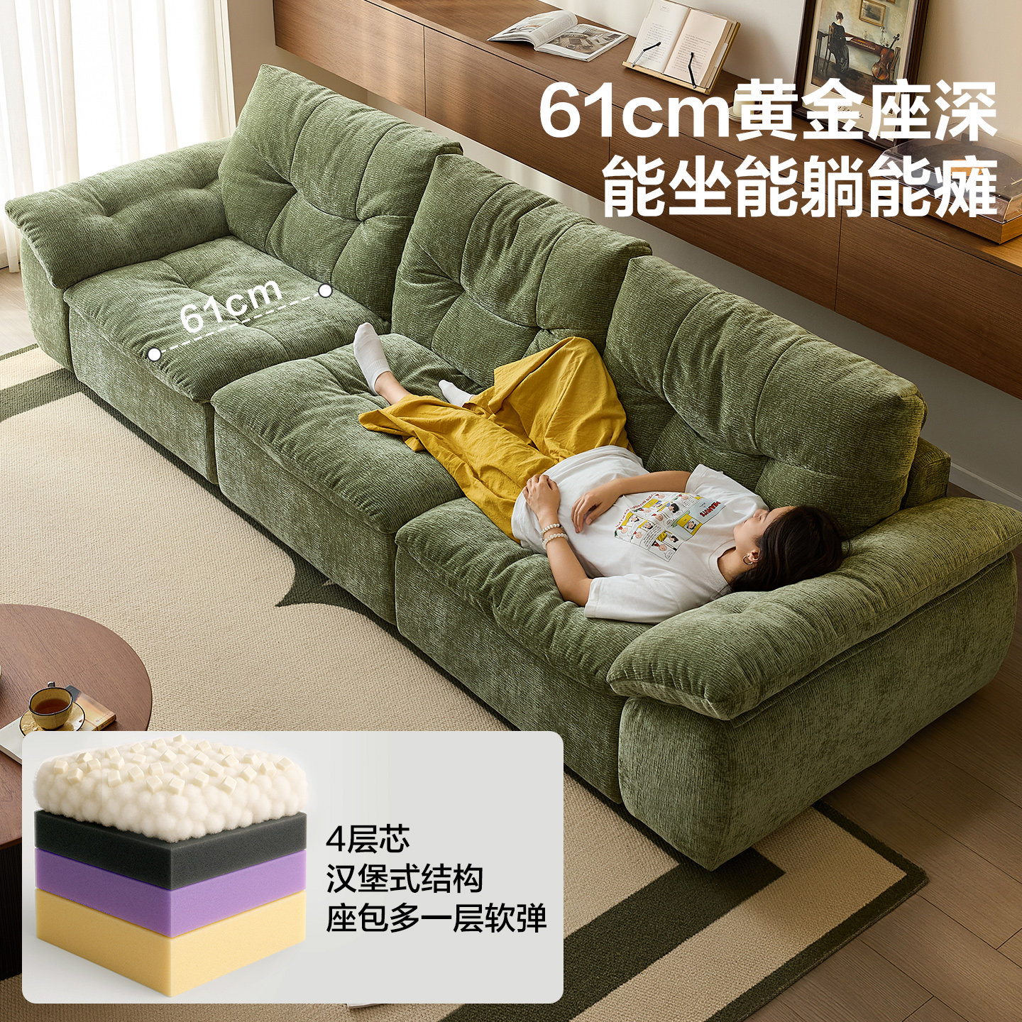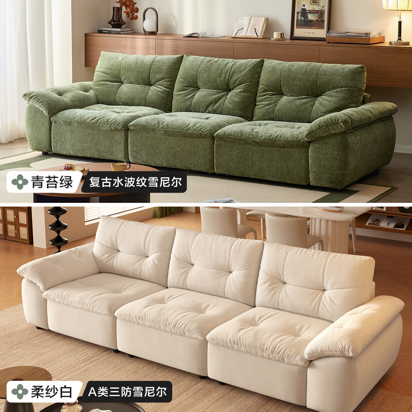 全友家居复古风雪尼尔布艺沙发可拆洗2025新款客厅直排云朵沙发