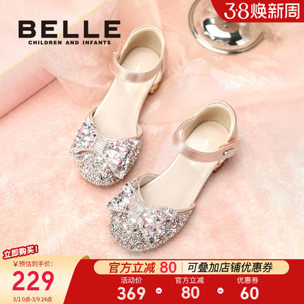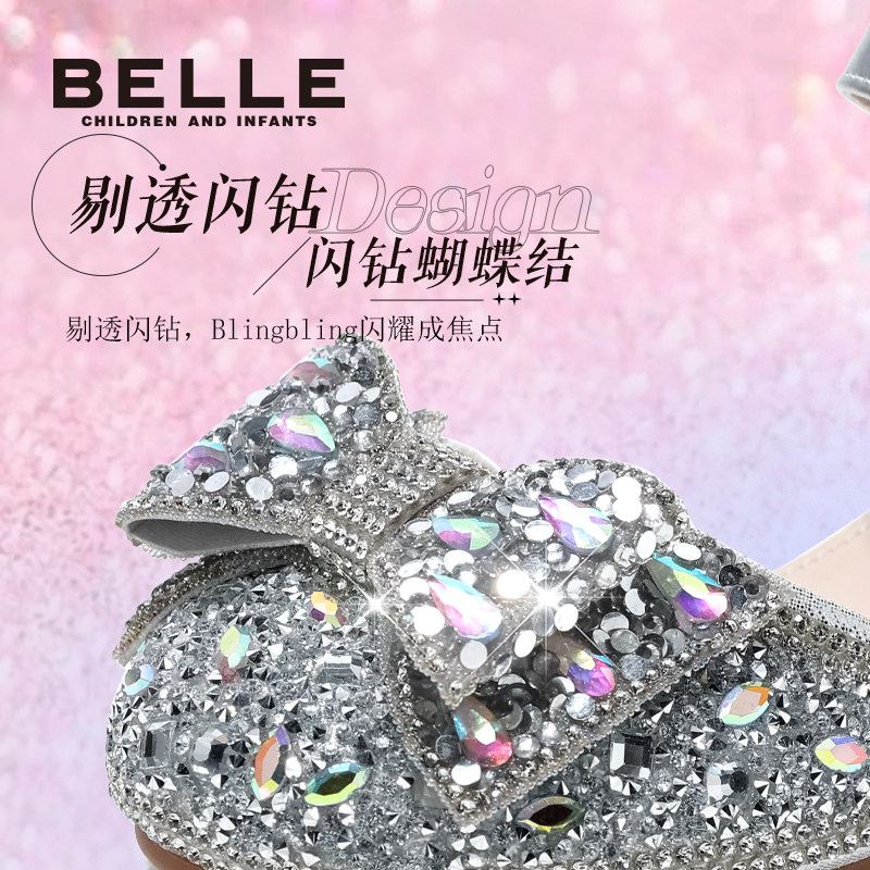 百丽童鞋女童公主鞋小女孩水晶鞋春季新款儿童配礼服单鞋宝宝凉鞋