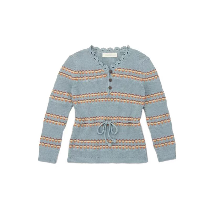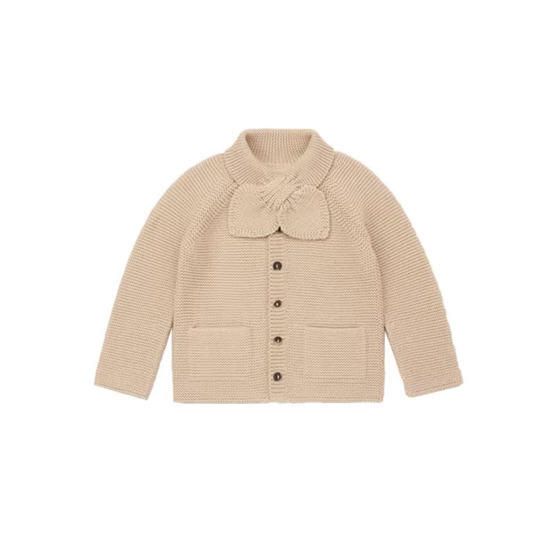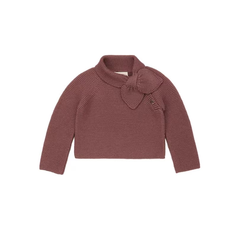 女童复古蝴蝶结套头针织开衫长裤
