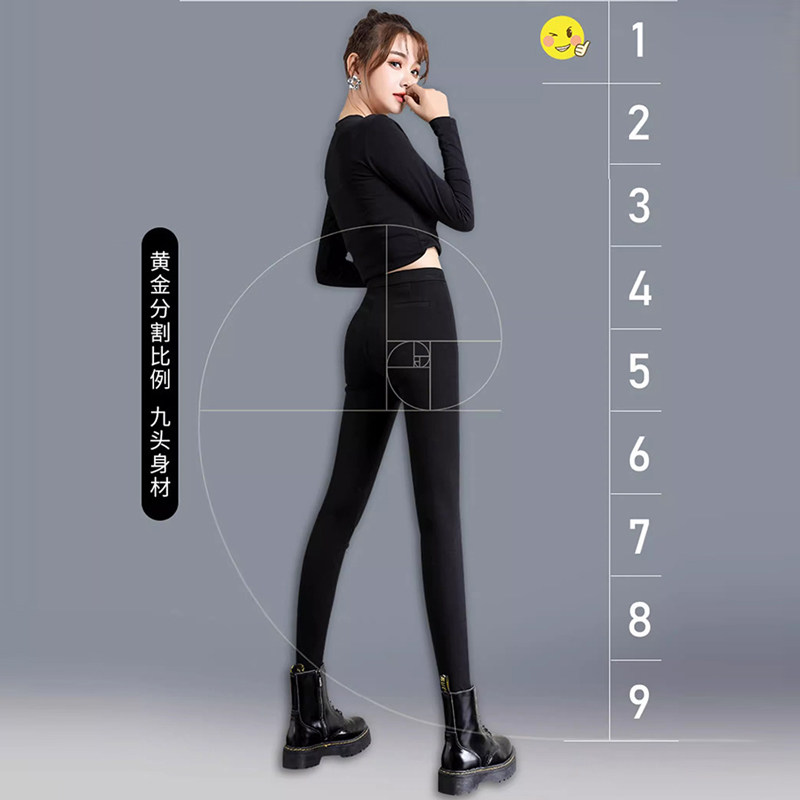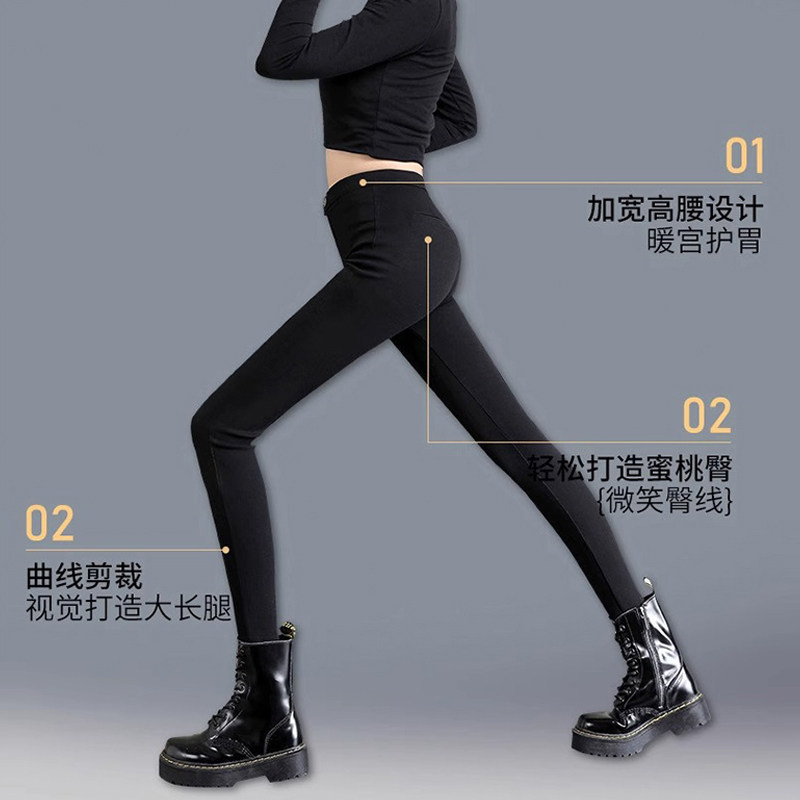 高腰小黑裤女春秋薄款外穿打底裤高腰弹力紧身显瘦黑色铅笔小脚裤