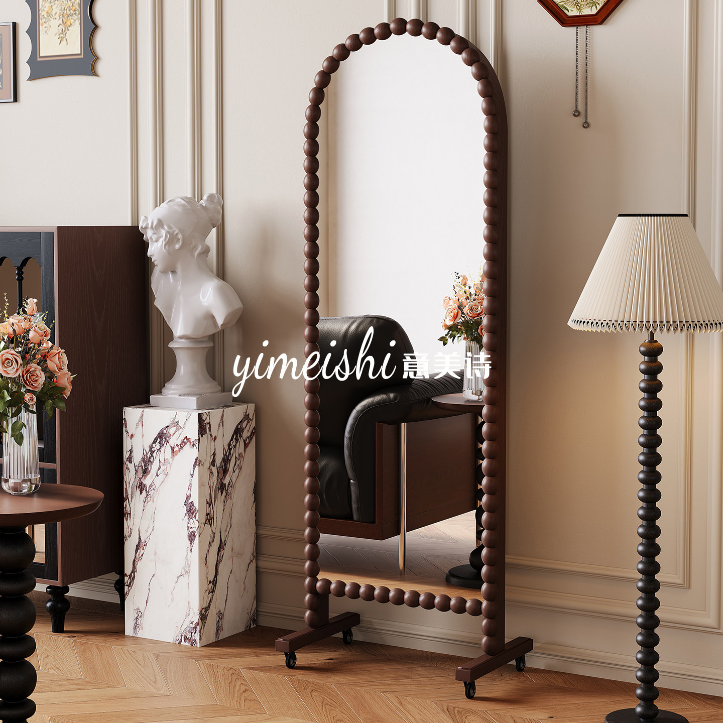 意美诗法式复古实木全身镜卧室穿衣镜衣帽间家用贴墙落地镜半身镜