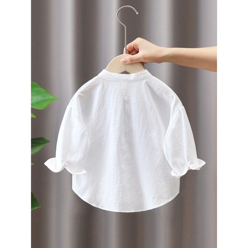 男女童衬衫春秋新款儿童棉麻上衣薄款男女宝宝打底衫男孩白色衬衣