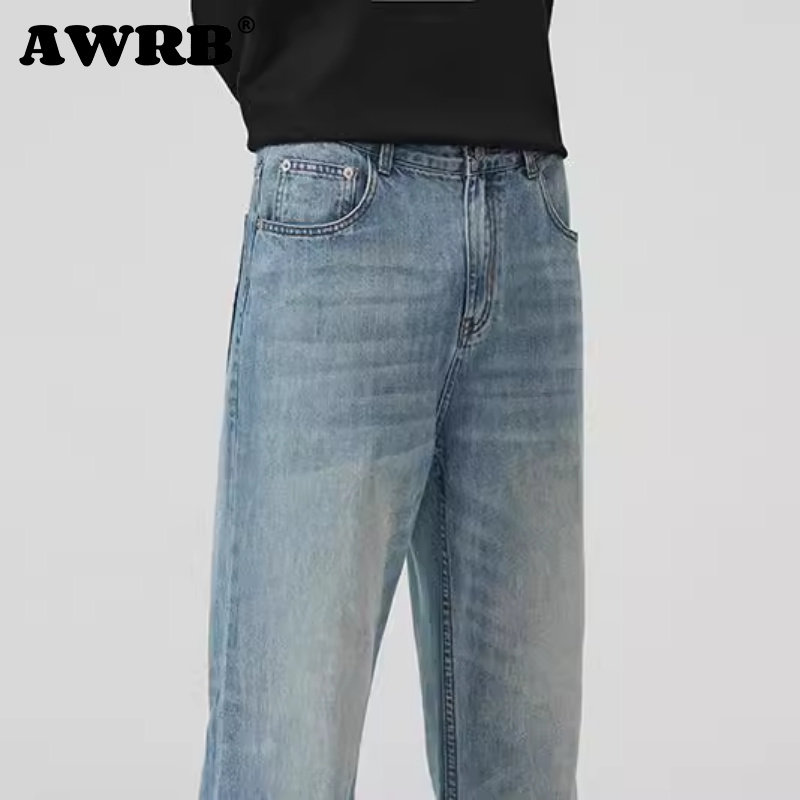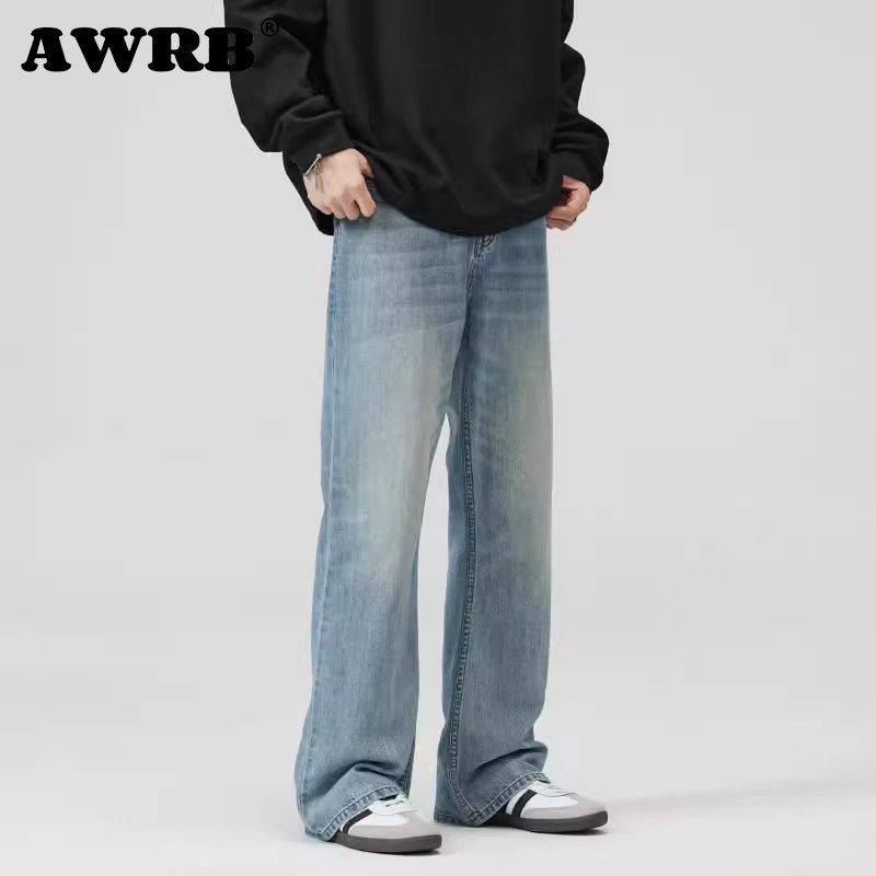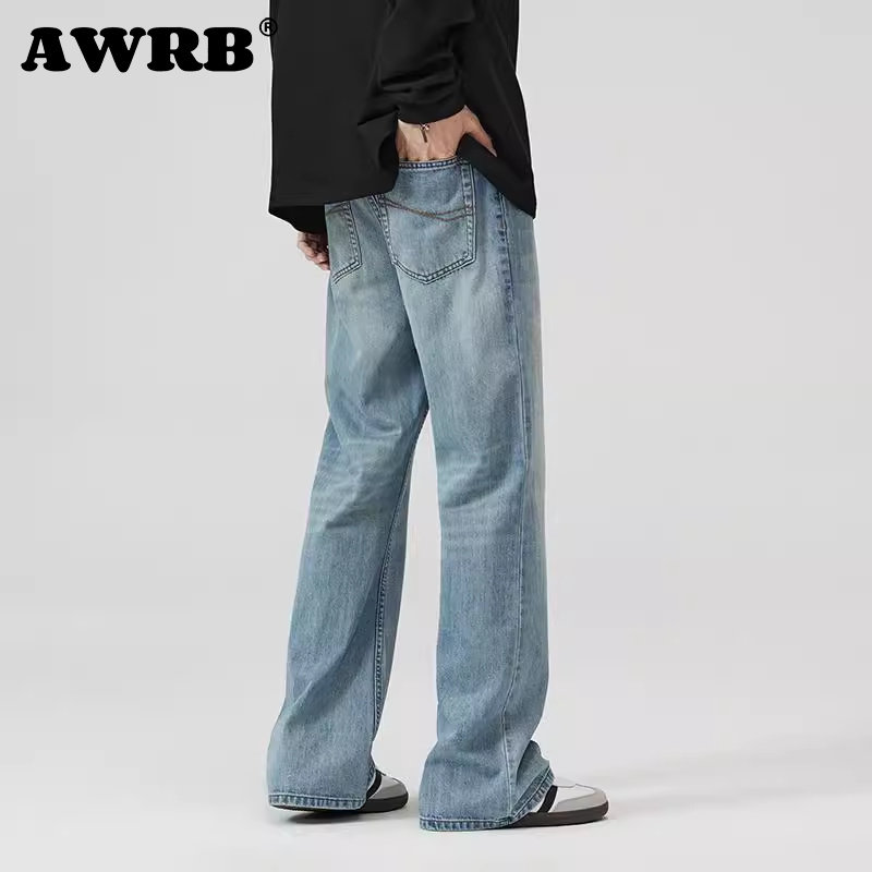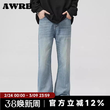 AWRB美式高街水洗浅蓝色微喇牛仔裤男潮牌高级感显瘦拖地长裤