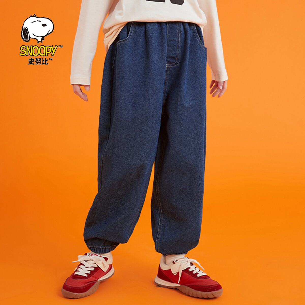 史努比童装女童牛仔裤春秋2026新款儿童洋气春装中大童束脚长裤子