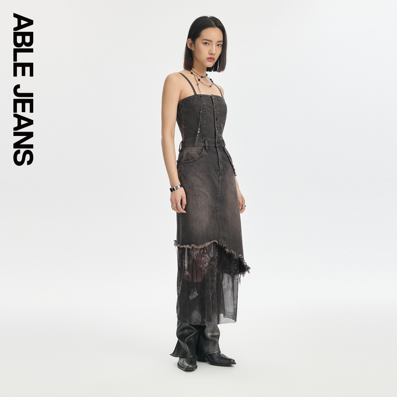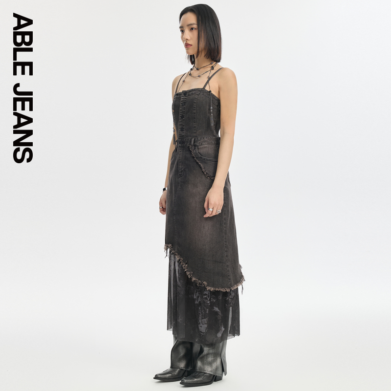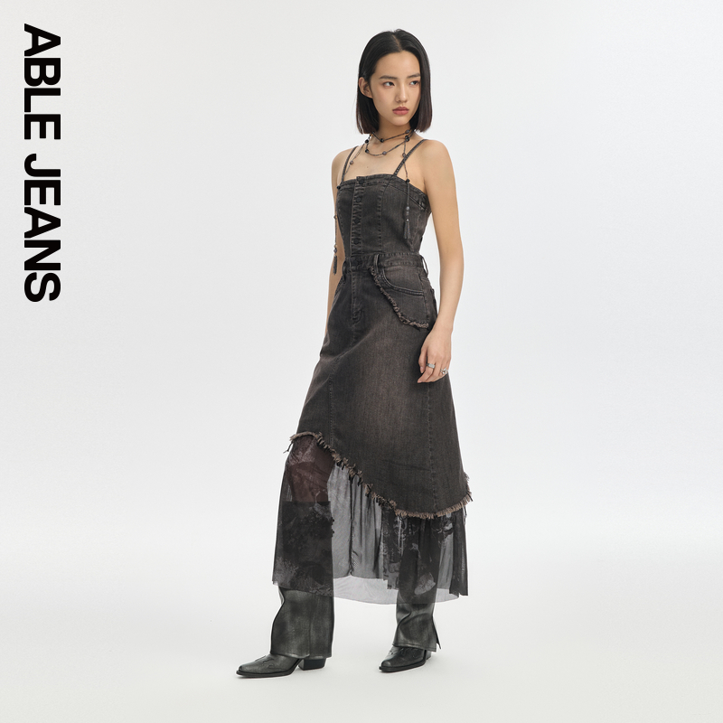 ABLE JEANS 新款女士新中式解构拼接牛仔吊带连衣裙复古摩登