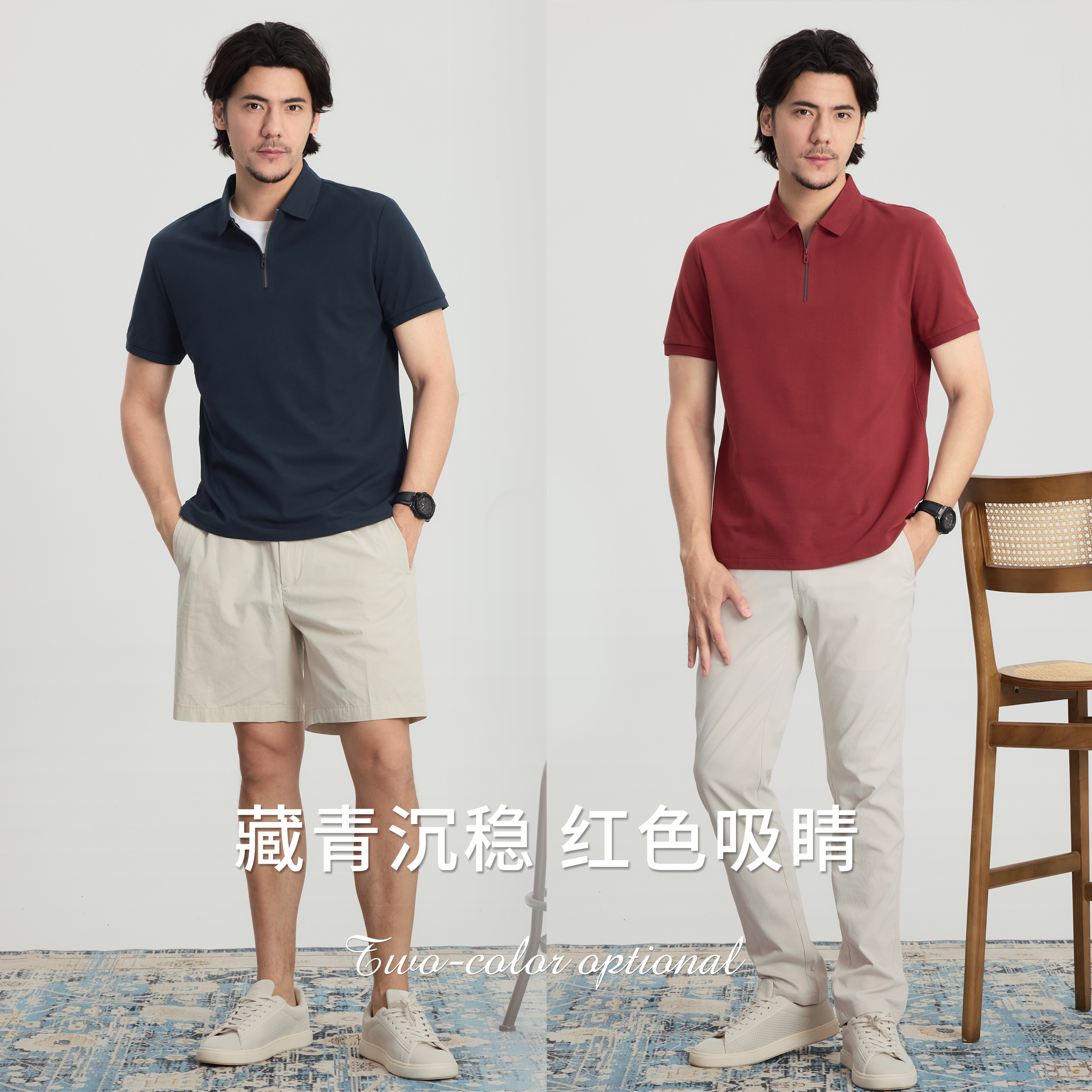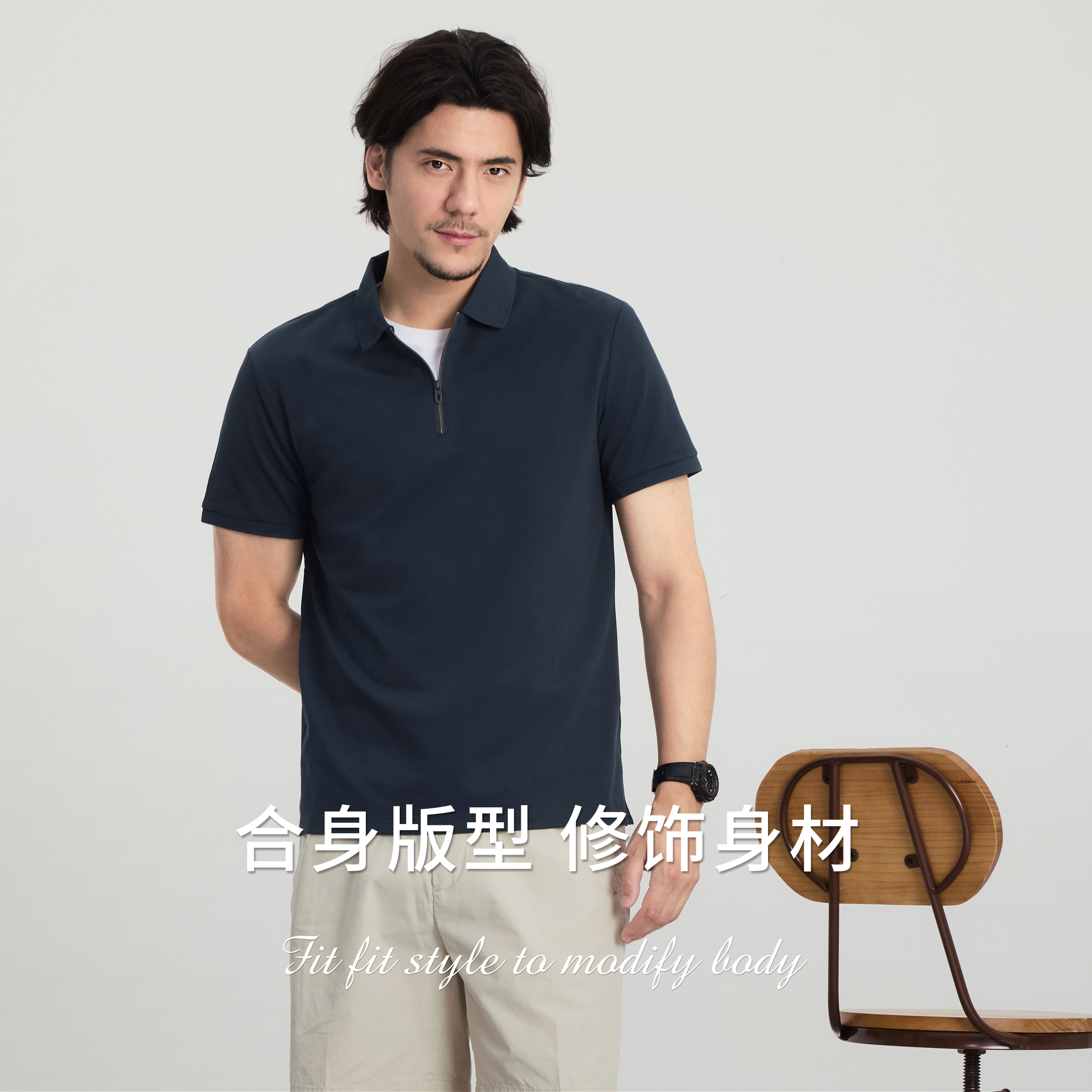 半拉链款polo衫男生短袖夏季抗皱休闲翻领t恤大弹力宽松半袖上衣