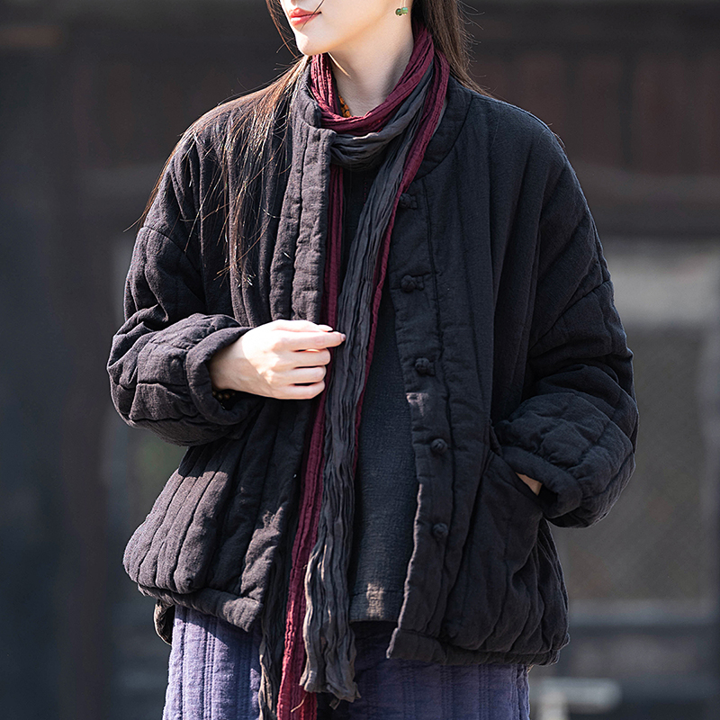 亚麻加厚棉服女冬2025新款复古夹棉文艺禅修棉衣棉麻保暖盘扣棉袄