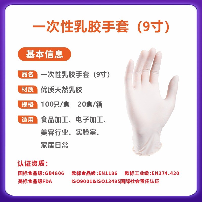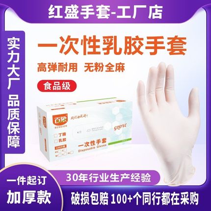 100只/盒 一次性乳胶手套百象加厚无粉全麻检查防护橡胶手套