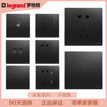 罗格朗未莱子夜黑色五孔带usb插座开关面板16a三孔空调家用86型