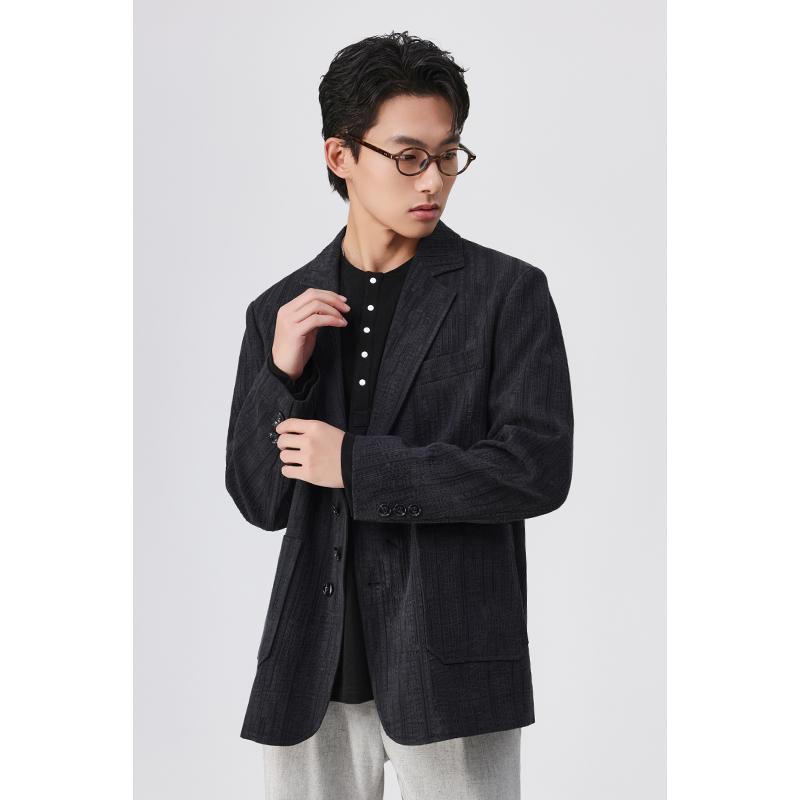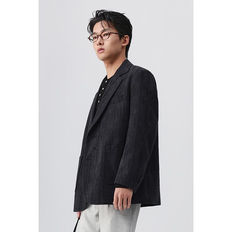 竹节纹提花西服男新中式国风休闲宽松春季设计感西装新款单西外套