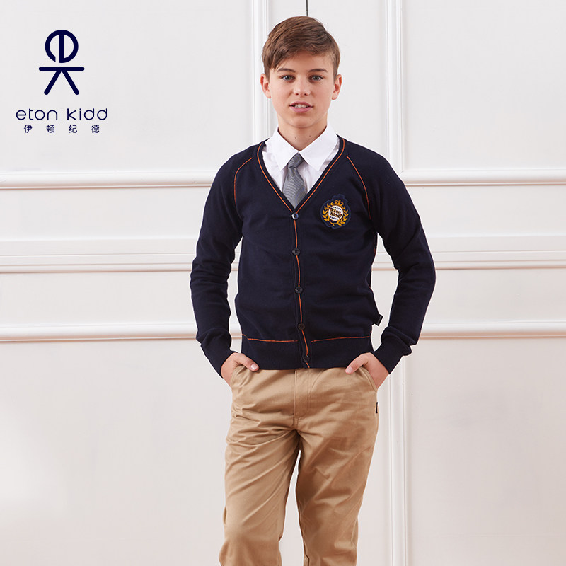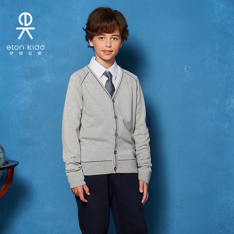 伊顿纪德校服秋季新品插肩袖男童女童长袖开衫儿童针织毛衣
