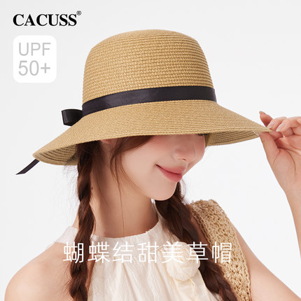 CACUSS帽子女款春夏草帽海边蝴蝶结防晒帽户外遮阳帽太阳帽渔夫帽
