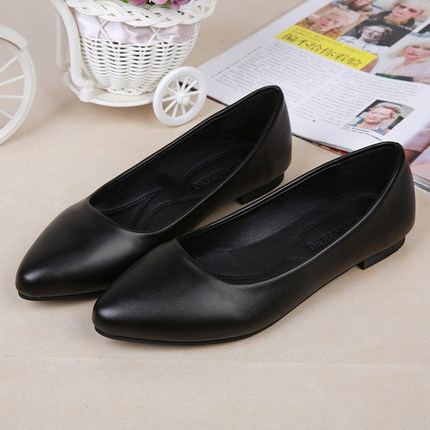 正装上班酒店防滑工作鞋女黑色平底平跟职业尖头浅口单鞋春季舒适