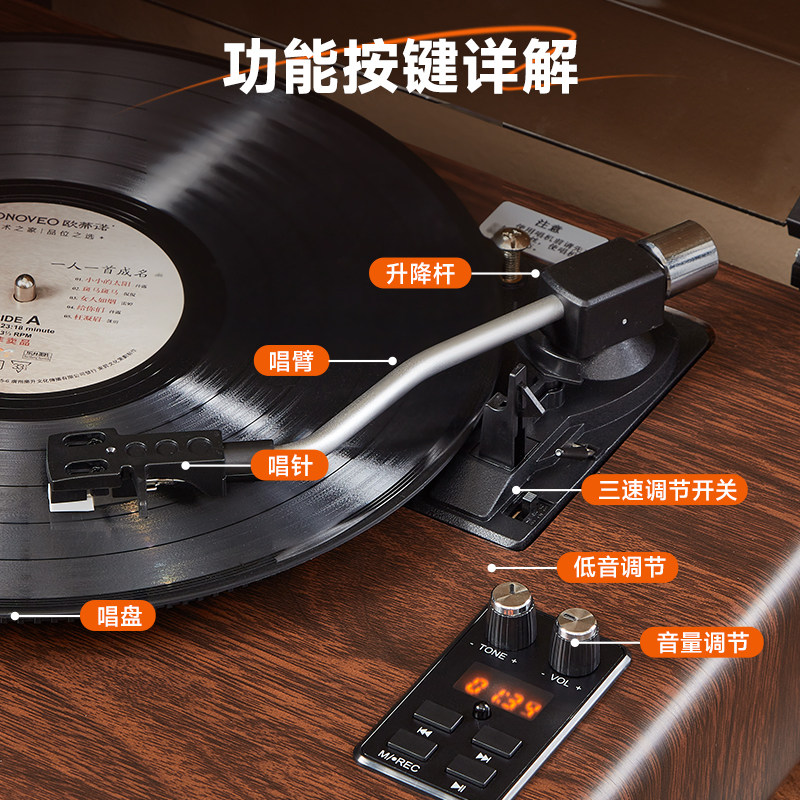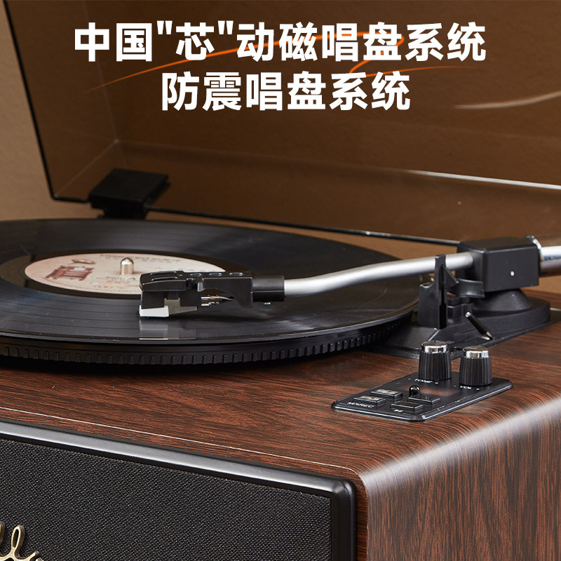 LP专业动磁黑胶唱片机蓝牙多功能一体复古留声机客厅轻奢礼品音响
