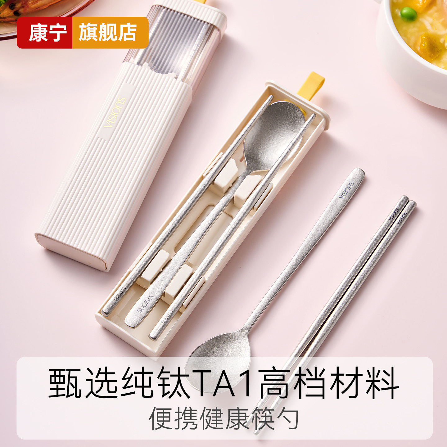 康宁纯钛筷子勺子套装小学生便携餐具收纳盒一个人专用儿童上班族