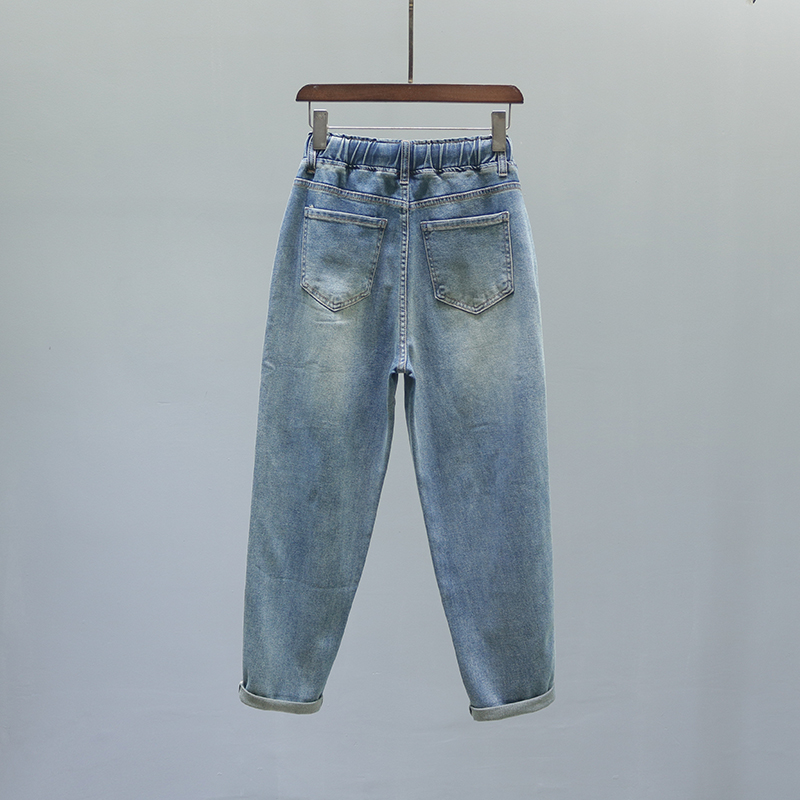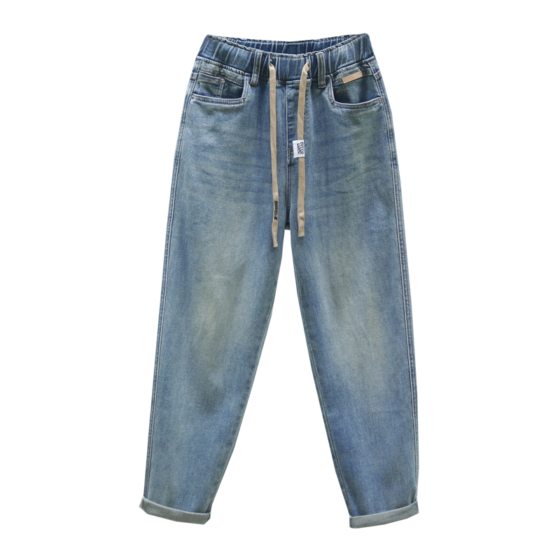 松紧腰哈伦牛仔裤女2025春季新款复古宽松休闲小脚老爹萝卜裤显瘦