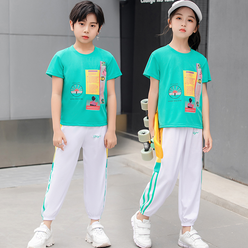 男童女童套装夏装儿童短袖长裤运动童装夏季中大童男女孩洋气时尚