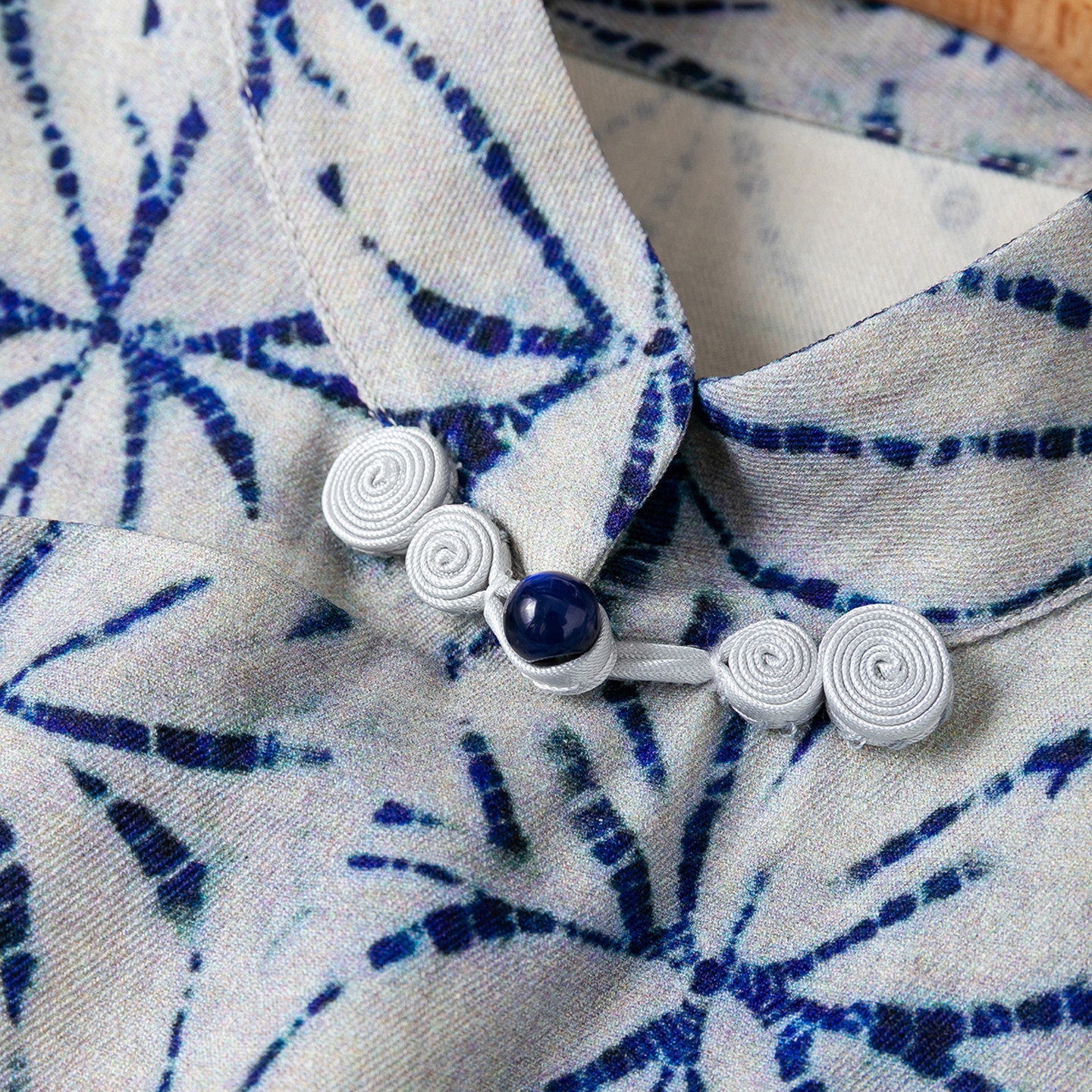 桑蚕丝古朴扎染风改良旗袍!复古国风真丝绢丝立领修身开叉连衣裙