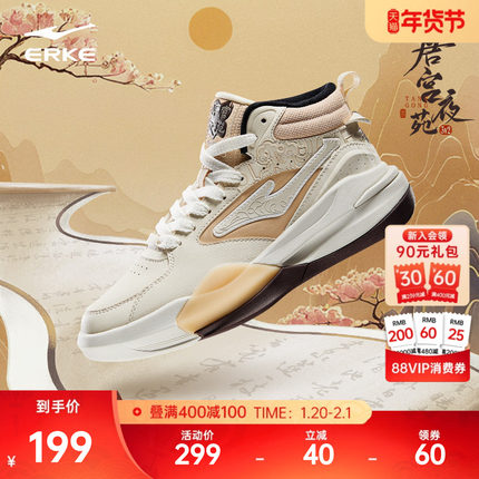 唐宫夜苑v2鸿星尔克女高帮板鞋冬季学生厚底增高休闲鞋复古运动鞋