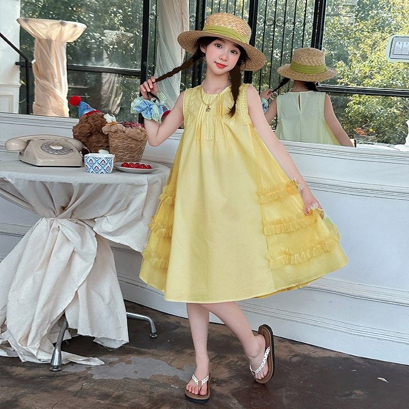女童裙子夏季2025新款小女孩学生纯棉布网纱公主裙儿童夏装连衣裙