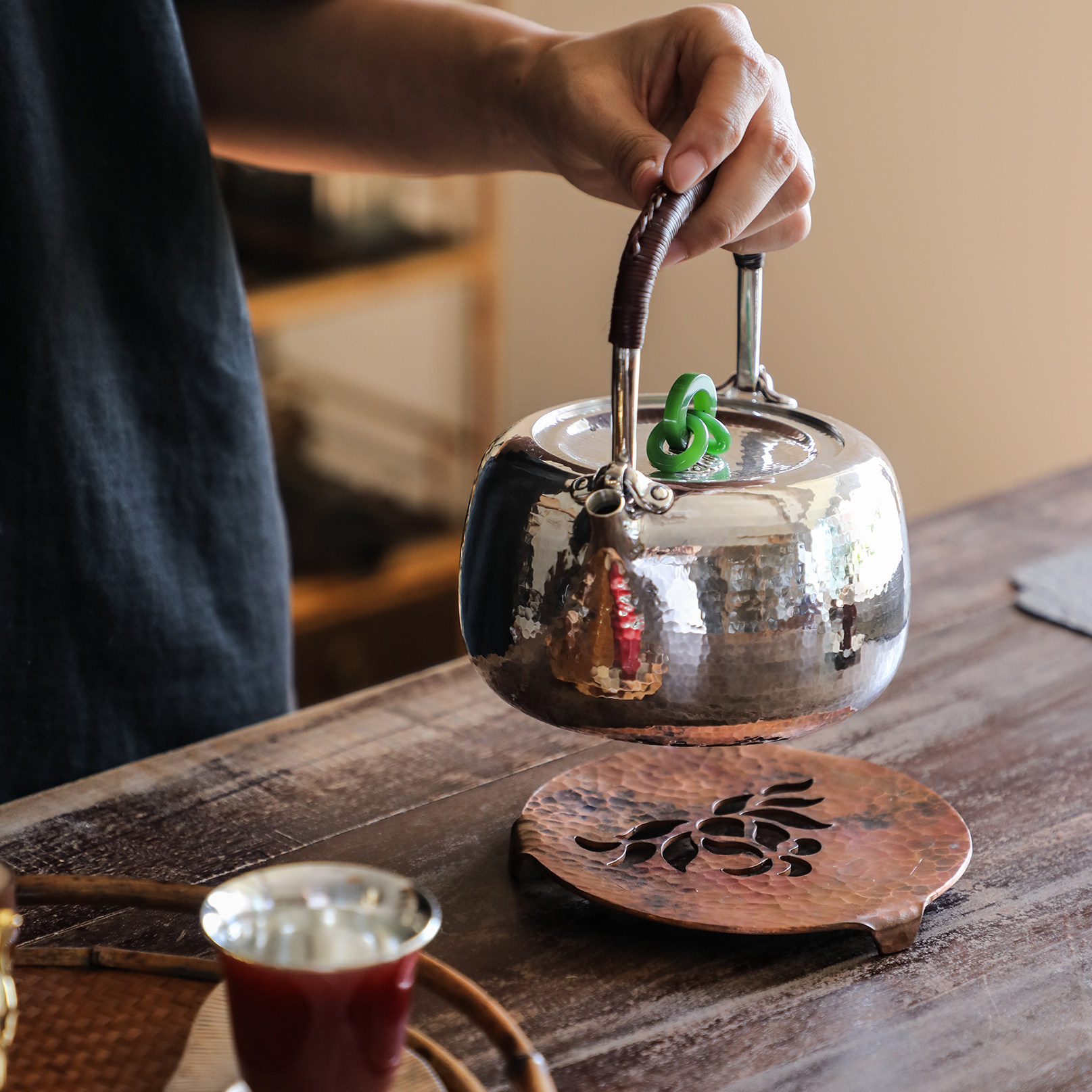 秦藏阁 银壶隔热架托 烧水壶托防烫壶垫原创纯手工铁壶隔热托铜架