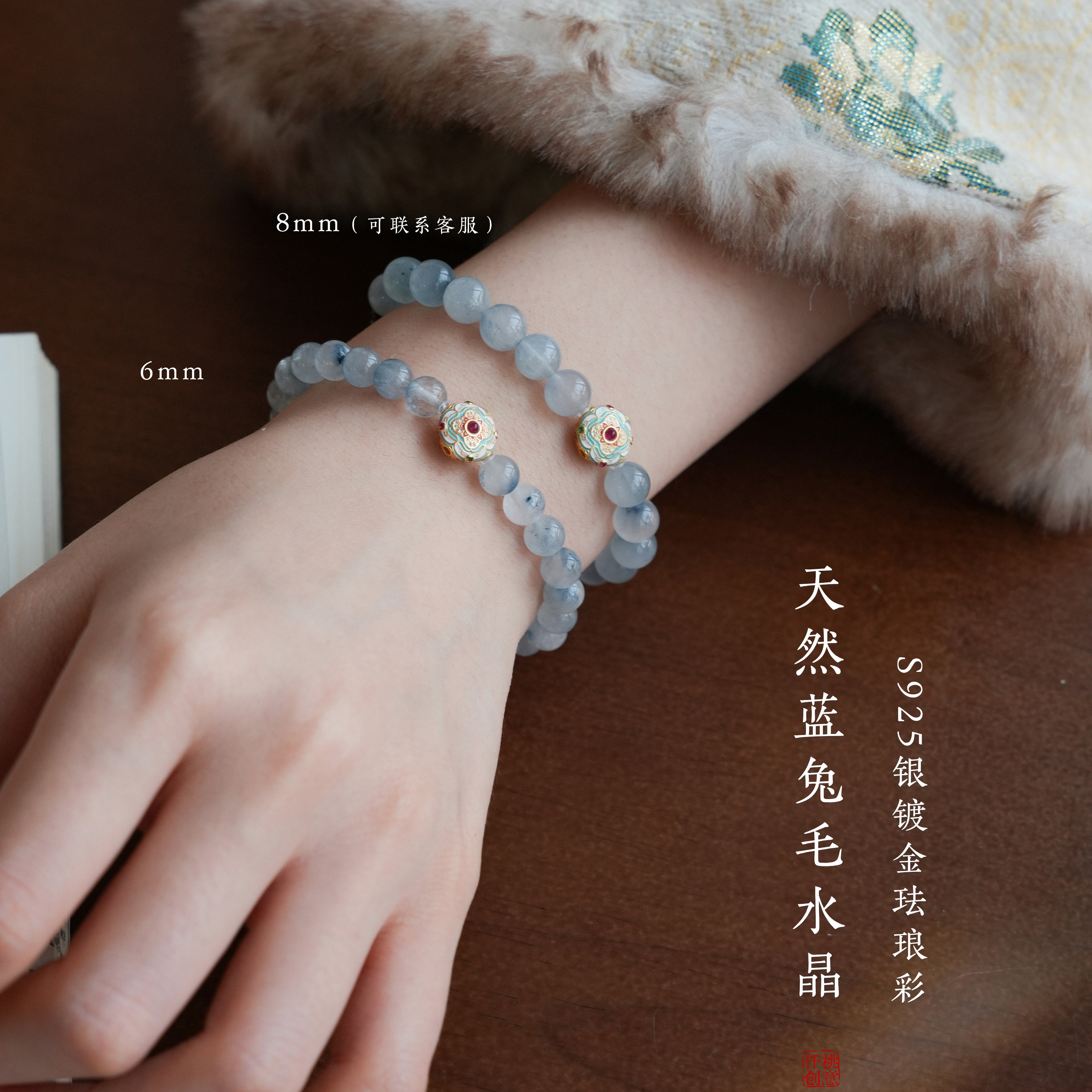 QIANTAO「霜词」原创中式天然蓝兔毛水晶手串珐琅彩情侣手链礼物