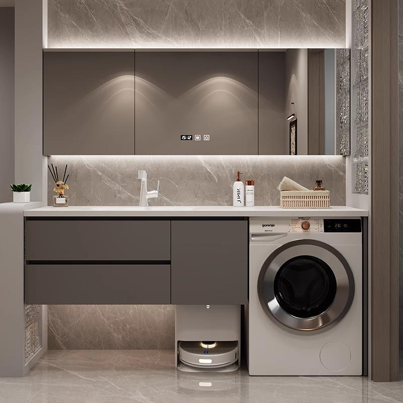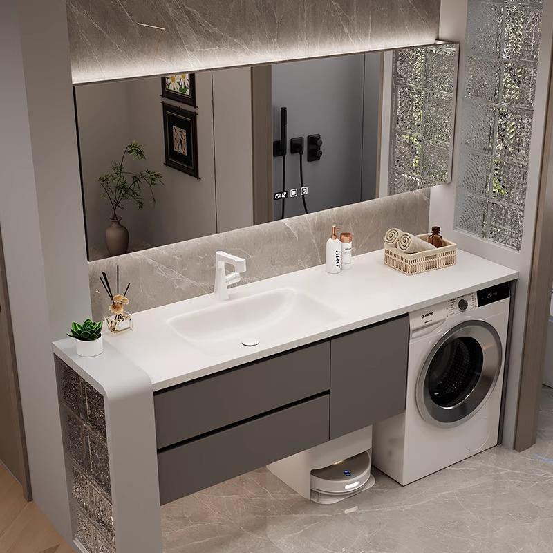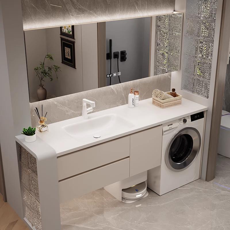 定制洗衣机洗手盆一体柜岩板热弯陶瓷无缝一体盆浴室柜洗手台组合