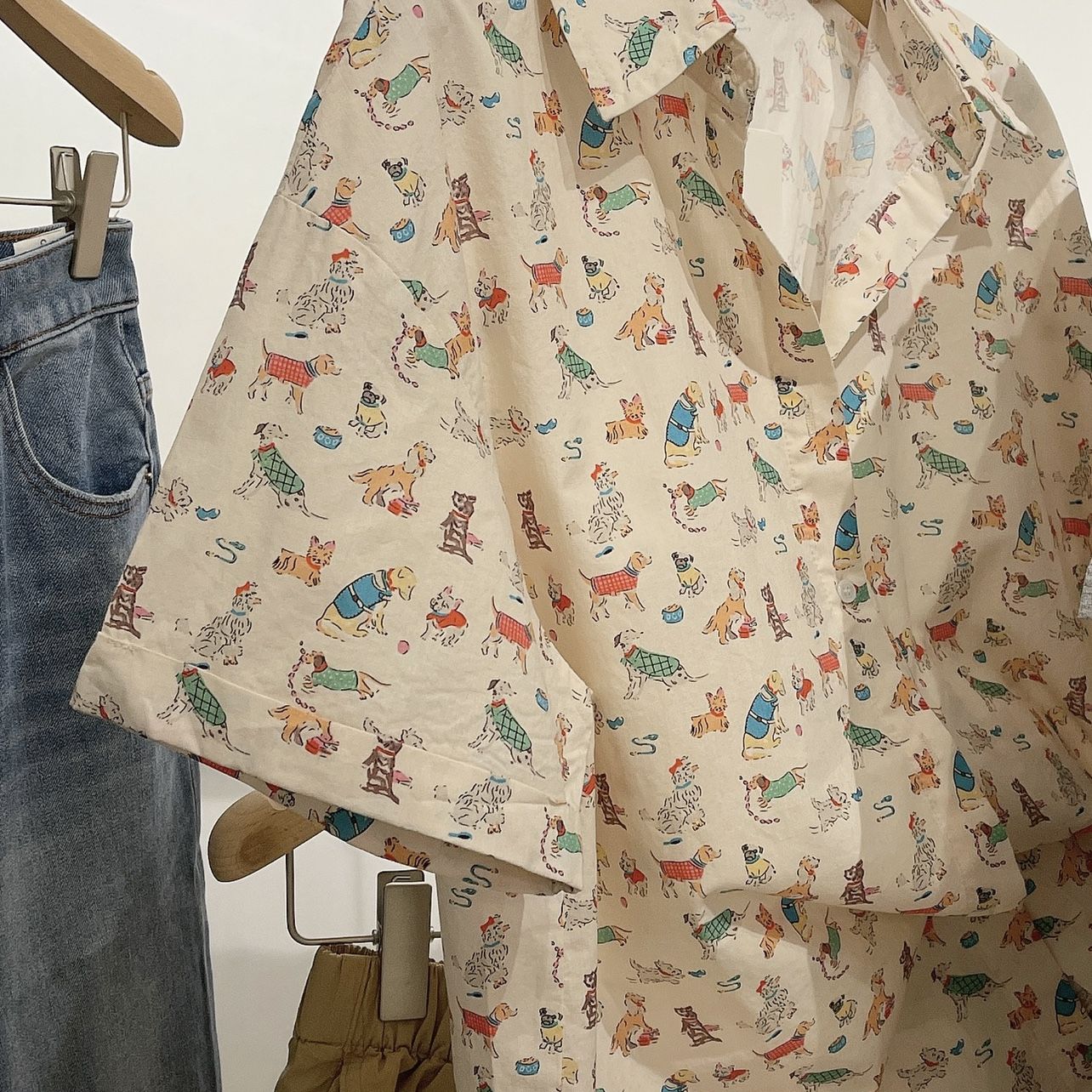 2025夏季新款大尺码可爱印花衬衫女短袖港风宽松小个子外穿上衣洋