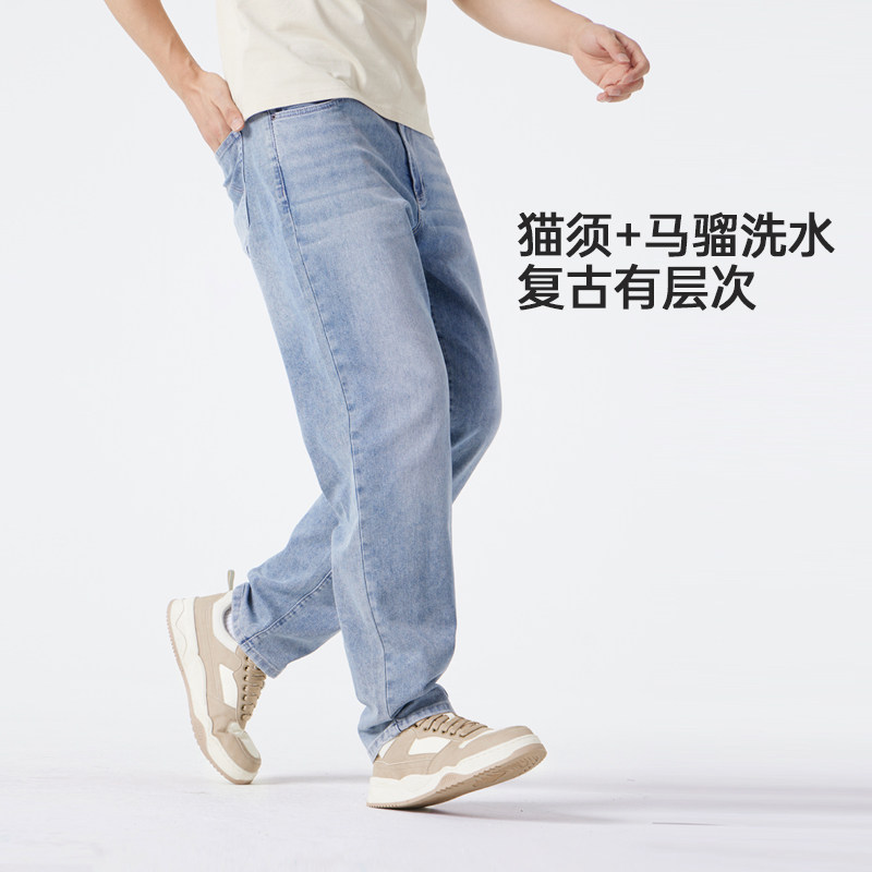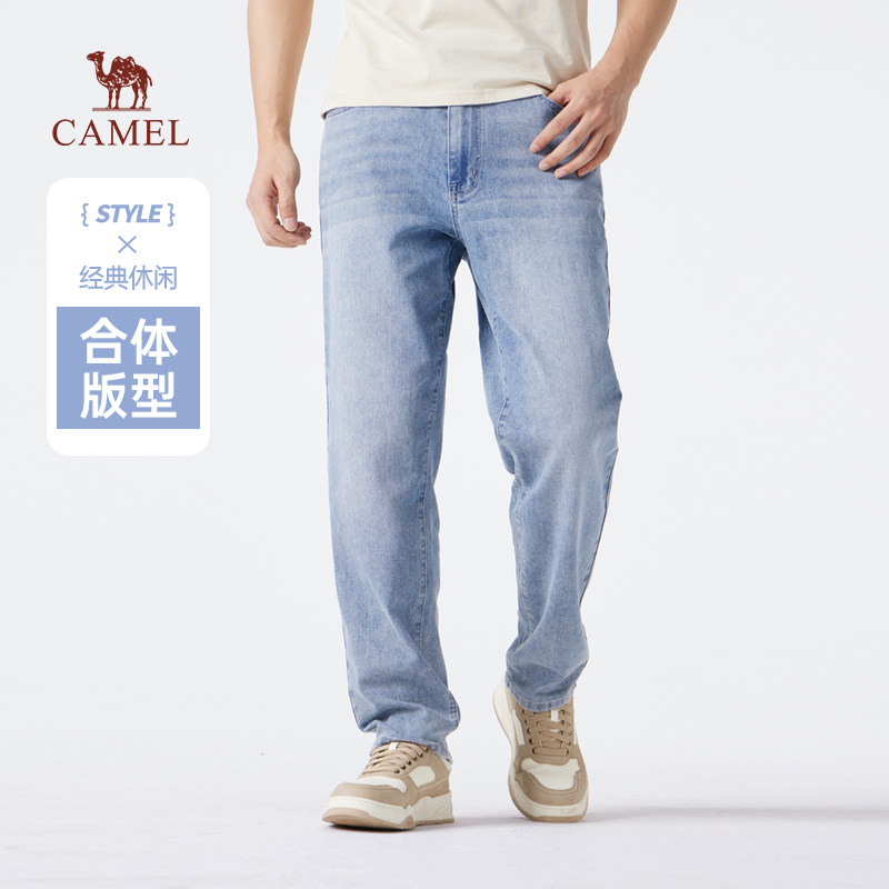 骆驼男装牛仔裤男直筒春夏透气直筒宽松水洗弹力百搭复古休闲长裤