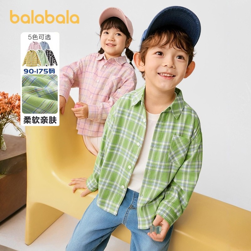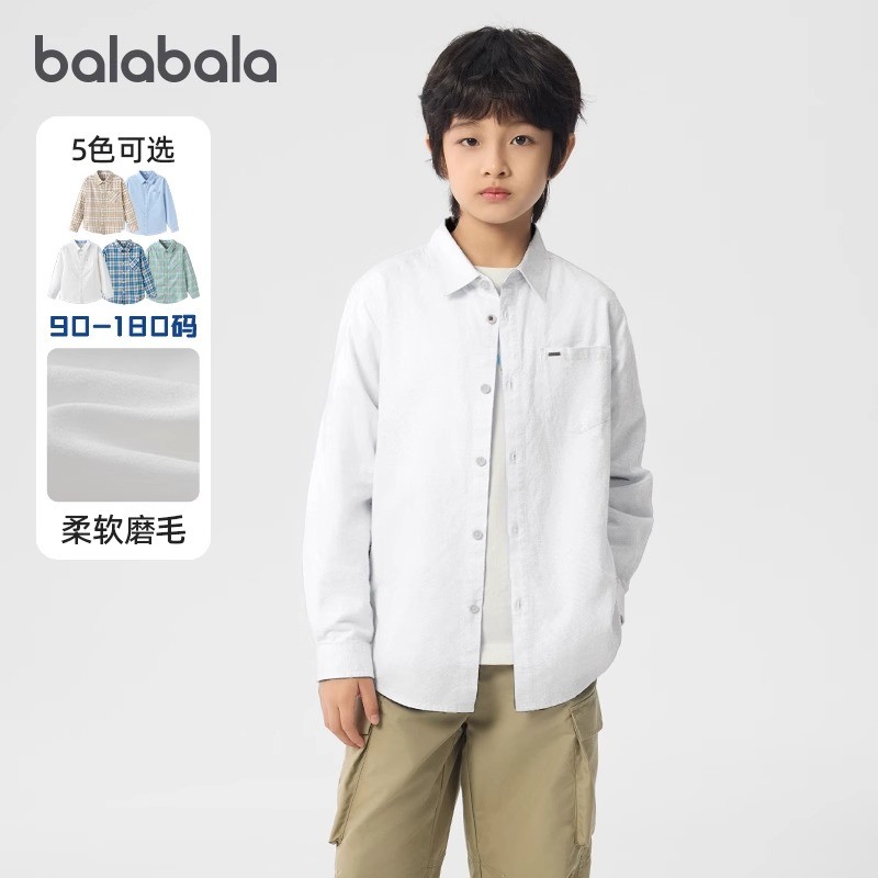 巴拉巴拉童装男童衬衫纯棉春装春秋经典翻领儿童长袖打底衫学院风