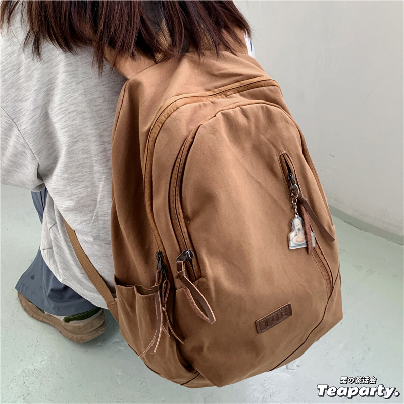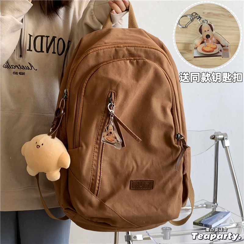 美式复古初中高中学生双肩包女生 纯色ins大容量书包旅行电脑背包