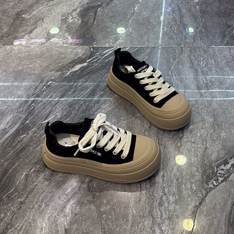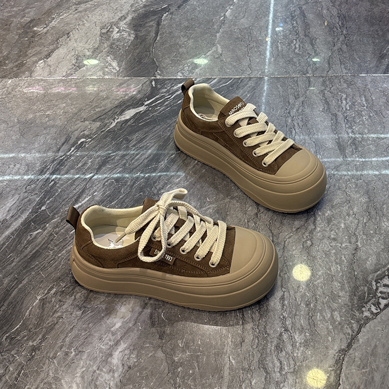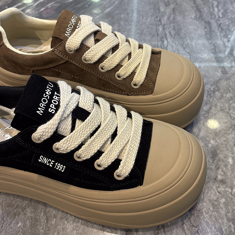 韩版真皮厚底丑萌板鞋女2025秋新款轻便增高显脚小百搭时尚休闲鞋