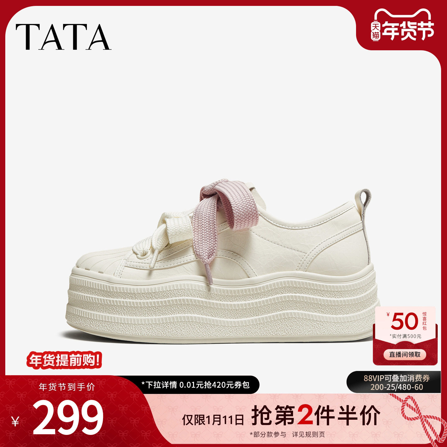 TATA他她小白鞋女2025夏季时尚休闲鞋厚底百搭新款板鞋CT906BM5