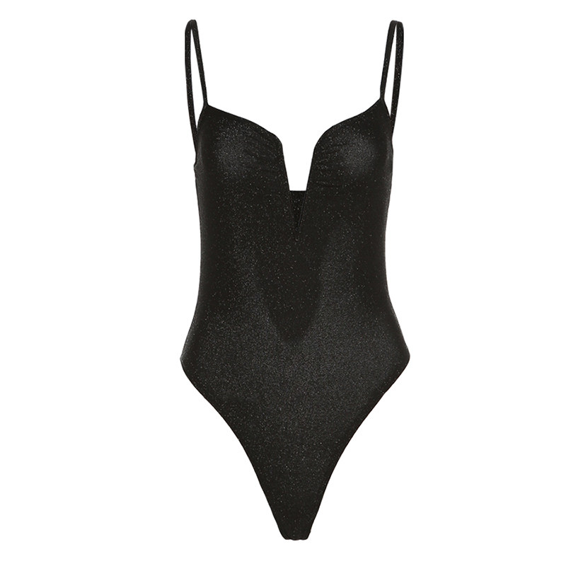 #Sisjuly# 欧美风网红同款V领修身收腰连体衣女 百搭显瘦小吊带潮